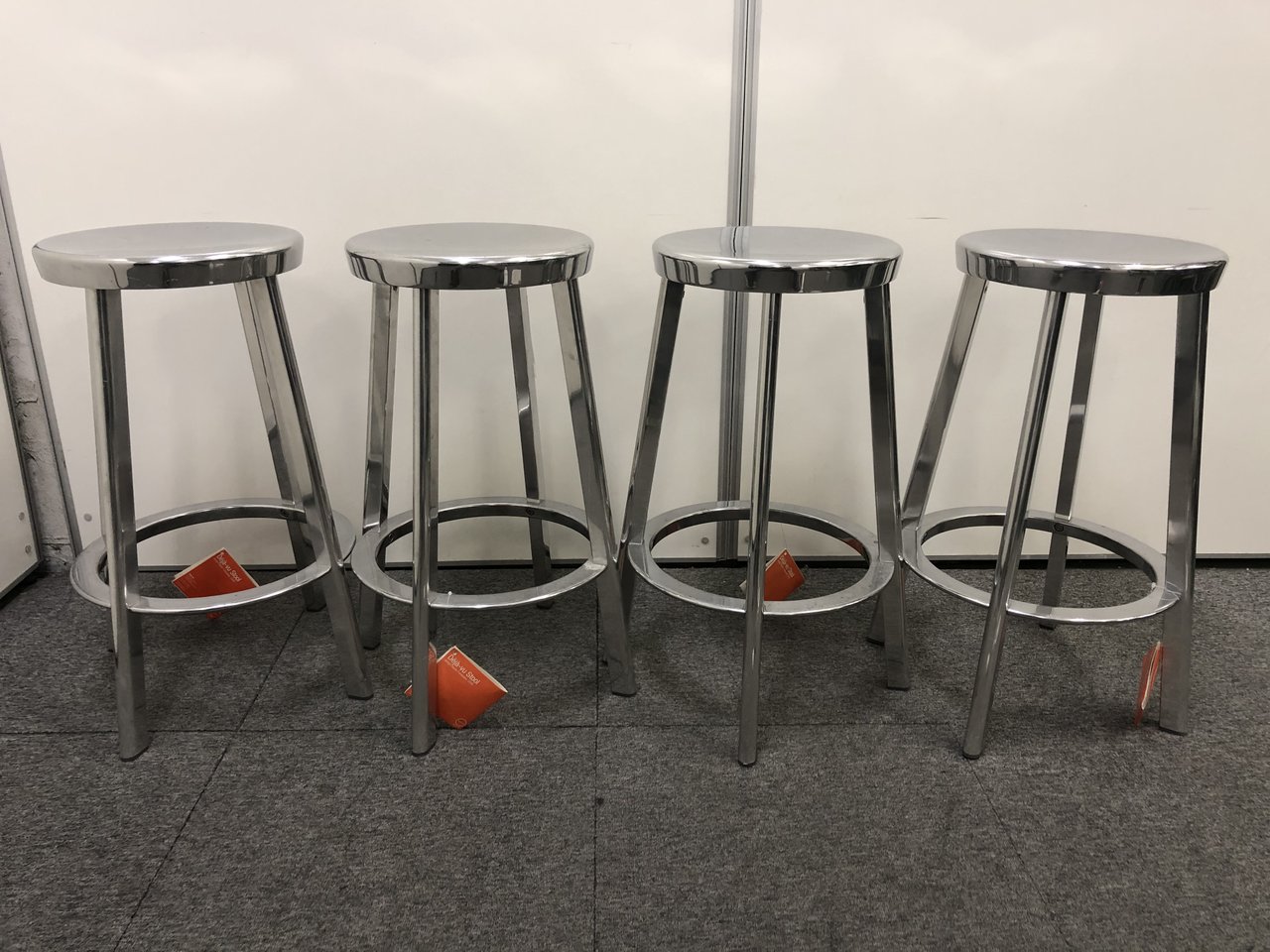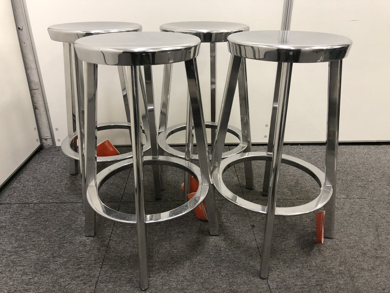 シンプルなデザインに磨き仕上げのアルミニウムを使用したスタイリッシュなスツール。