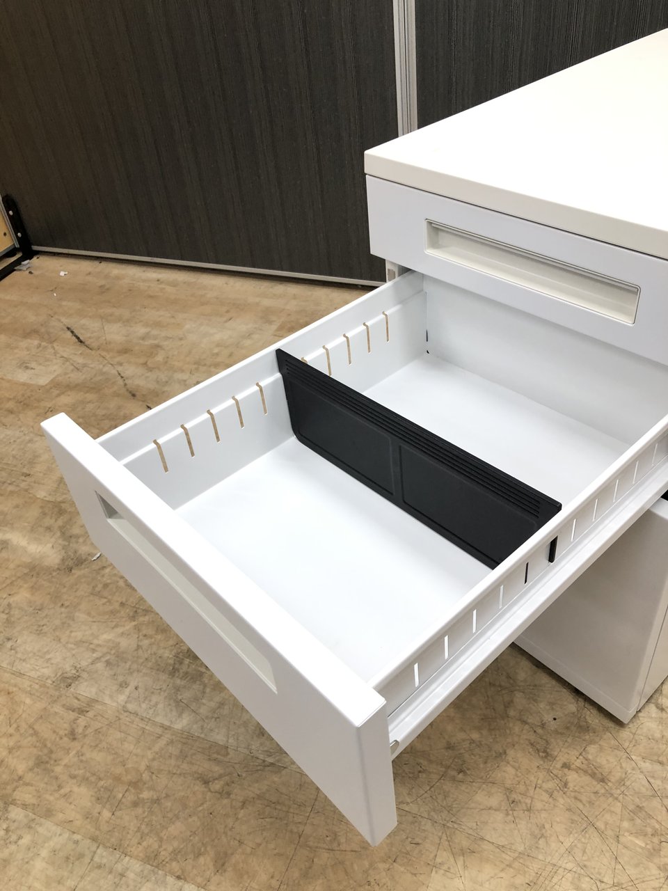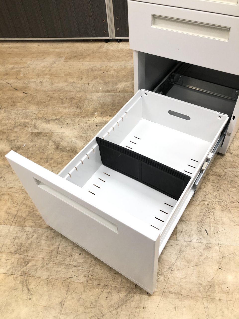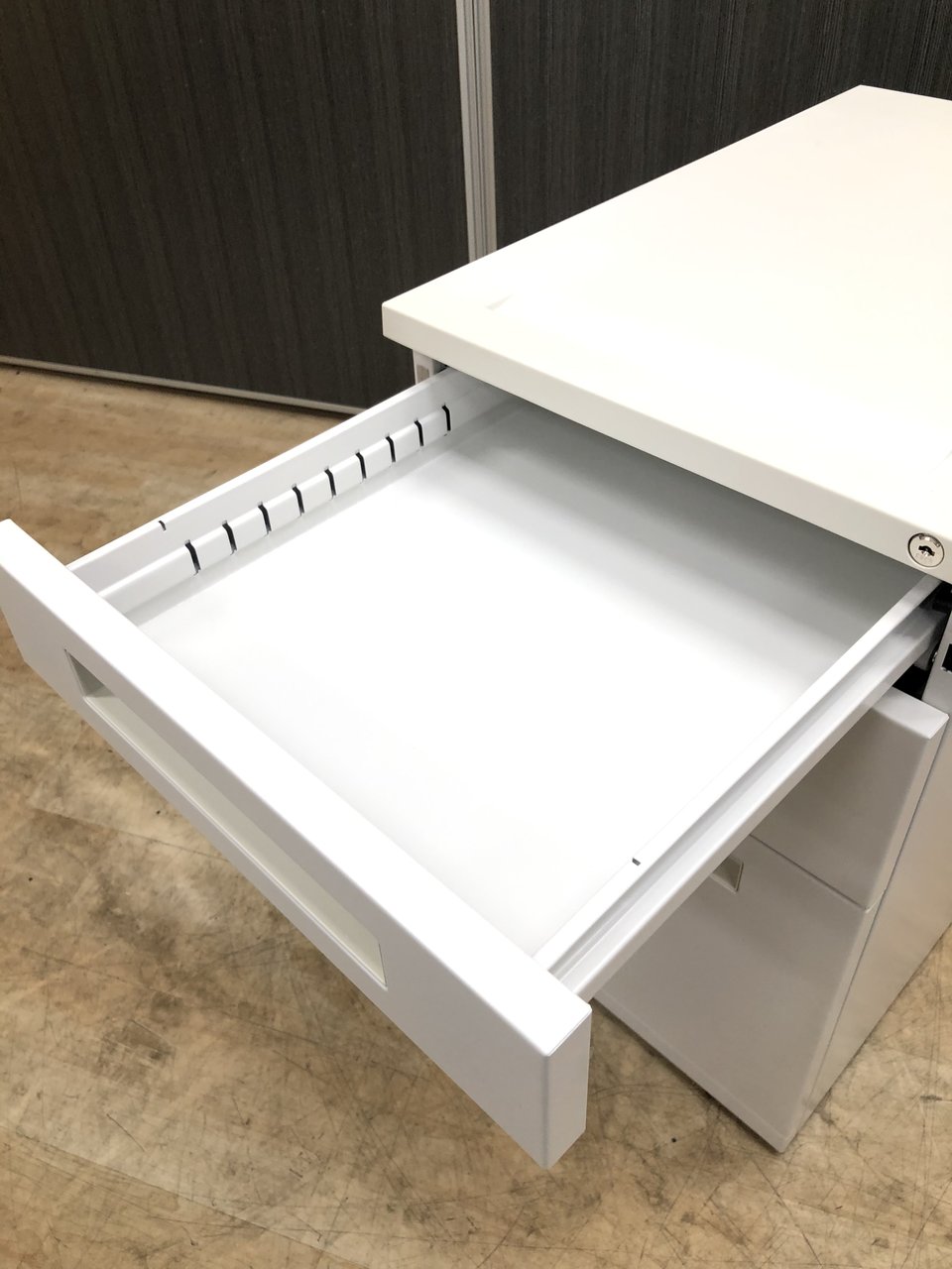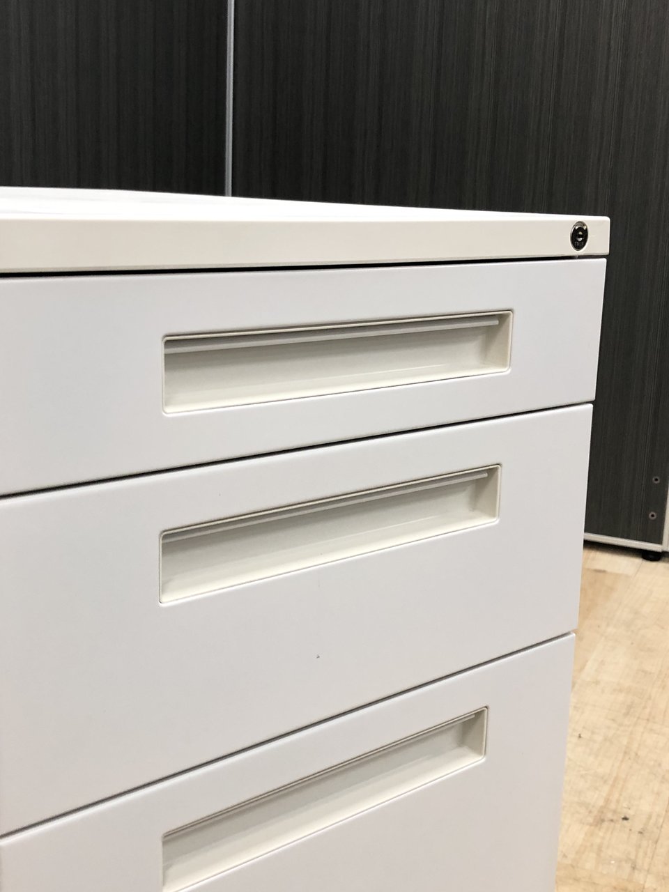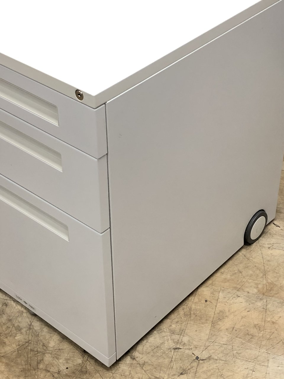 - 一部不具合ありその脇机・ワゴンの本来の効用を果たすための機能以外の一部が使用不可な状態。(例、引出が開閉しづらい、 キャスターロック機能使用不可、ラッチ不良 等がある。)