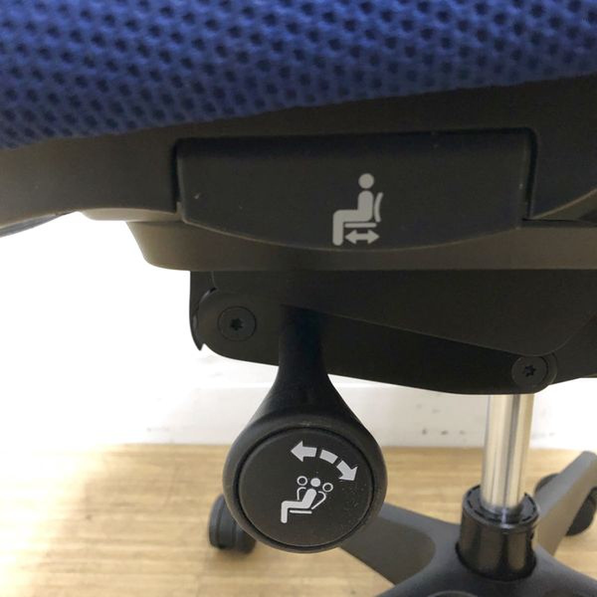 - 座面右下のダイヤル操作で、リクライニングの強弱調整が行えます。これまでのダイヤル式よりも、少ない回転数で、最弱?最強の調整が可能です。