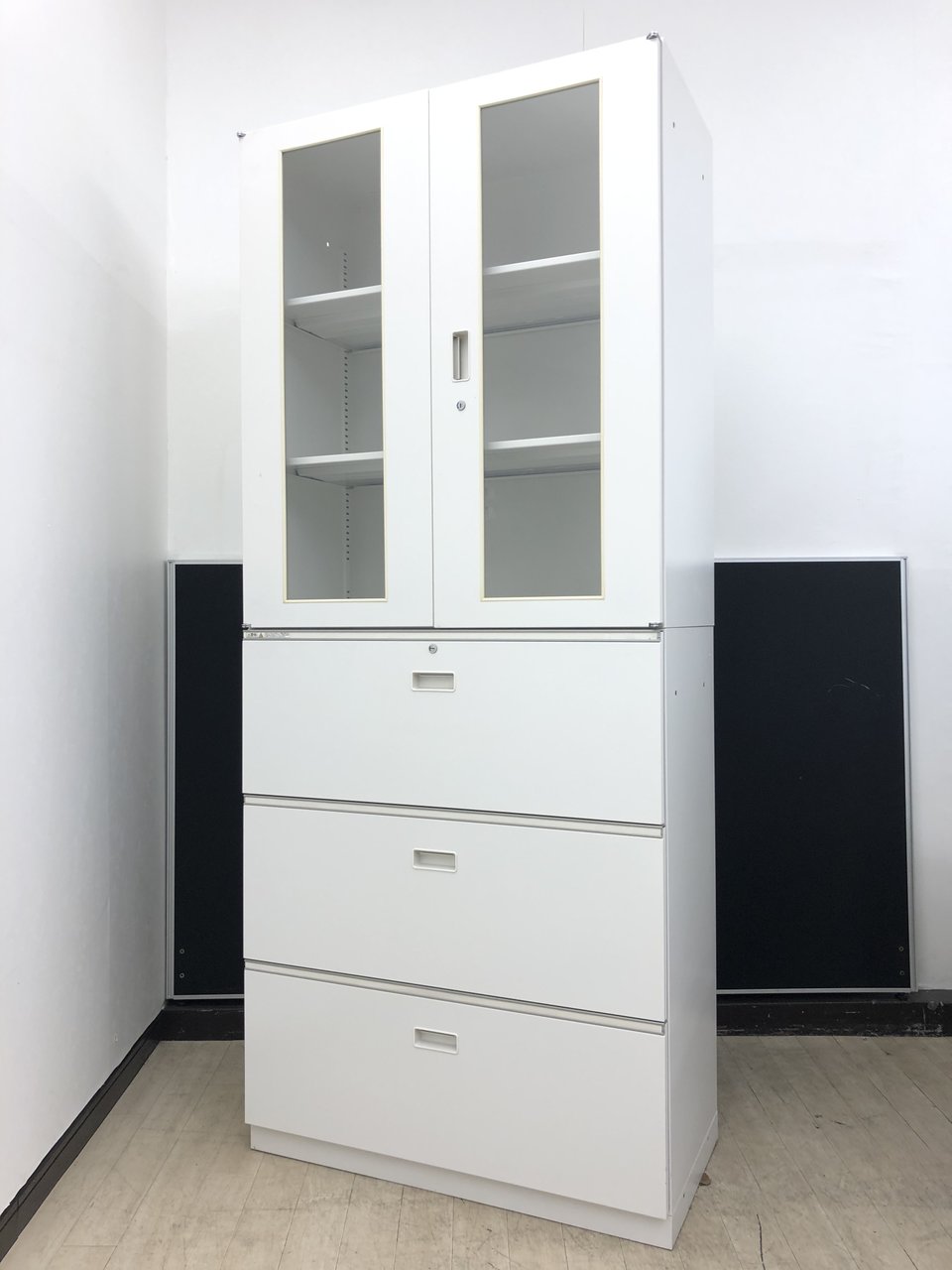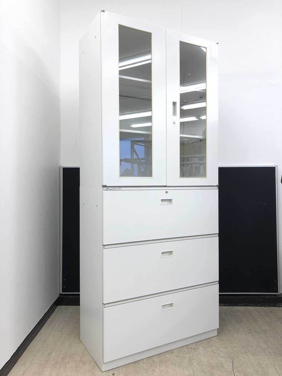 【引き違い+引き出しの組み合わせ 】◆イトーキ/シンライン 引き戸 3段ラテラル 本棚 収納 家具 リユース 九州最大級《オフィスバスターズ福岡博多店は、福岡を拠点として、日本全国へ中古オフィス用品・オフィス家具を提供しております》