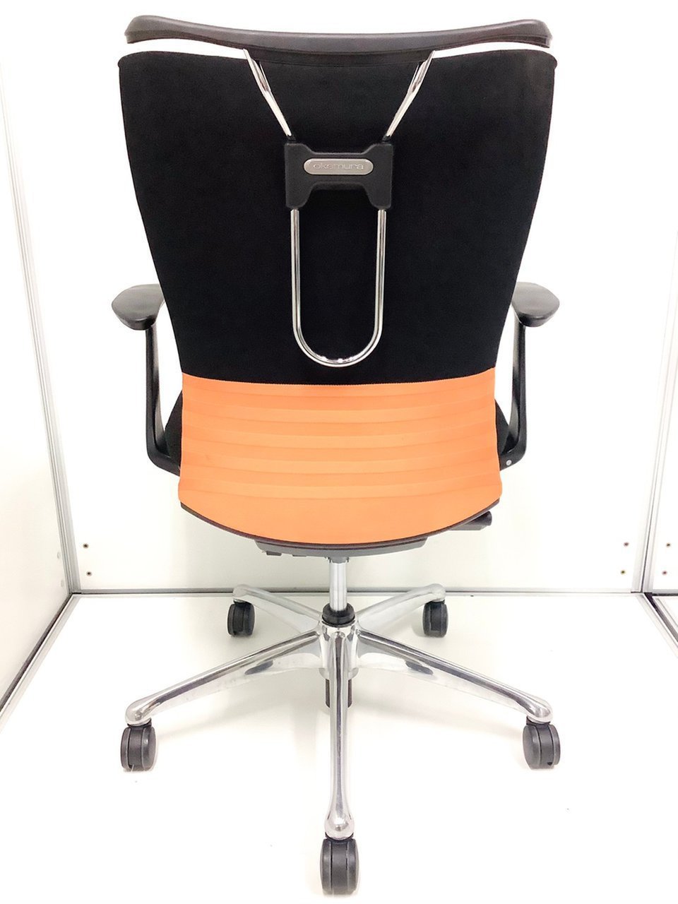 【ミドルクラスチェアの決定版】 根強い人気! オカムラ/フィーゴ/ブラック/シームレスオレンジ/コートハンガー付き- 在庫数