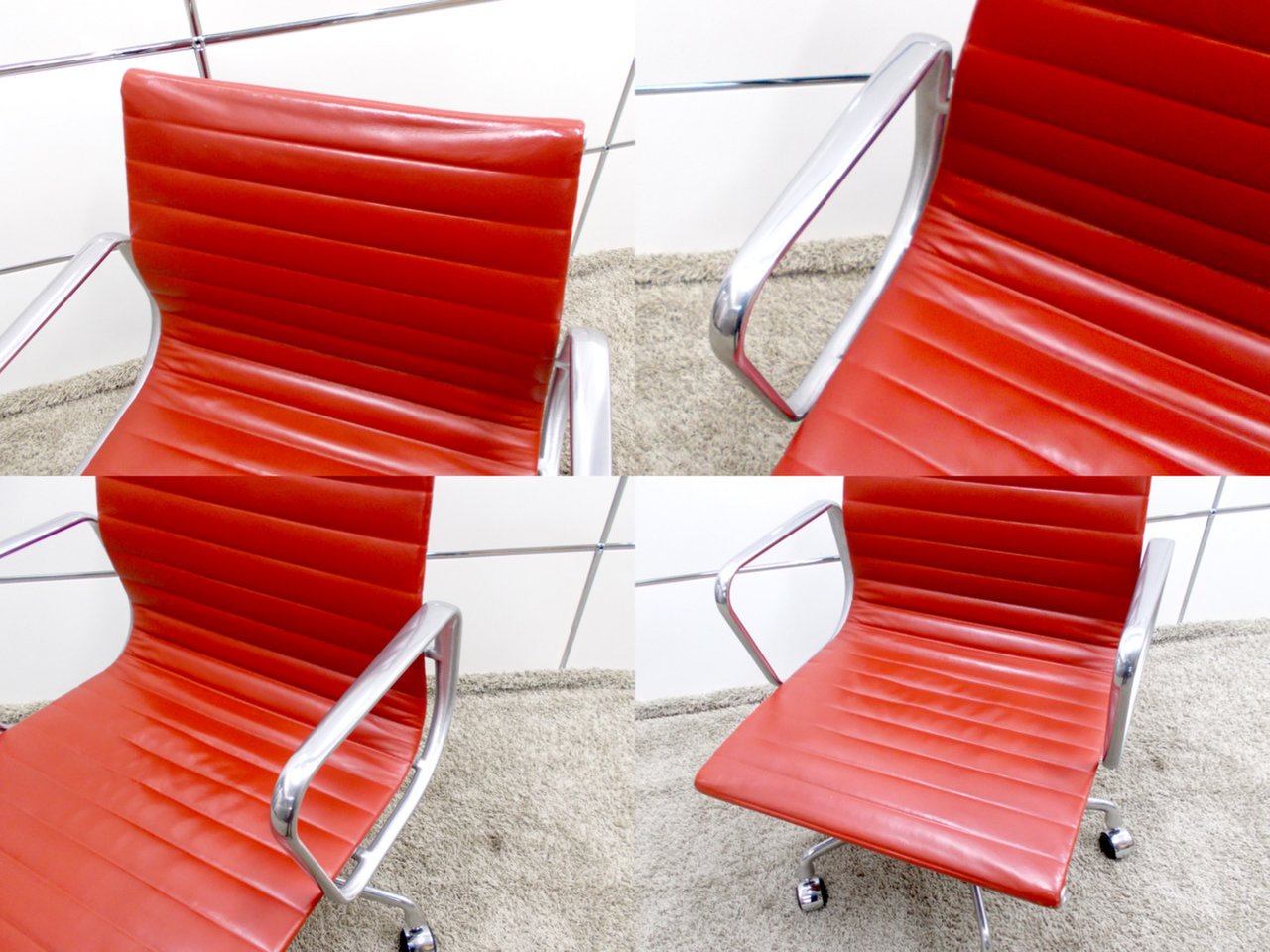 【店舗移転セール!!】HermanMiller/ハーマンミラー イームズ アルミナムチェア ローバック 赤 本革- デザイナーズ家具センター