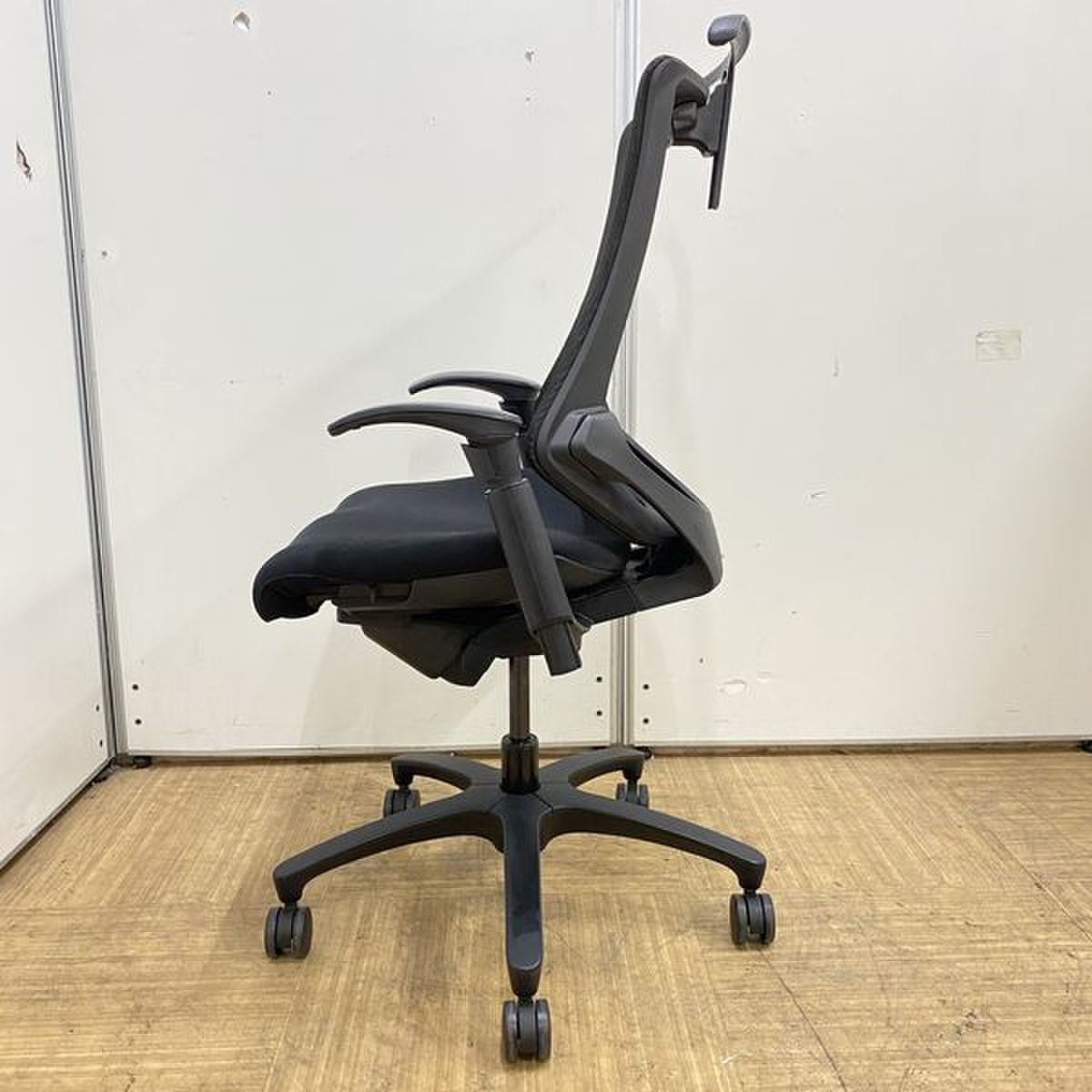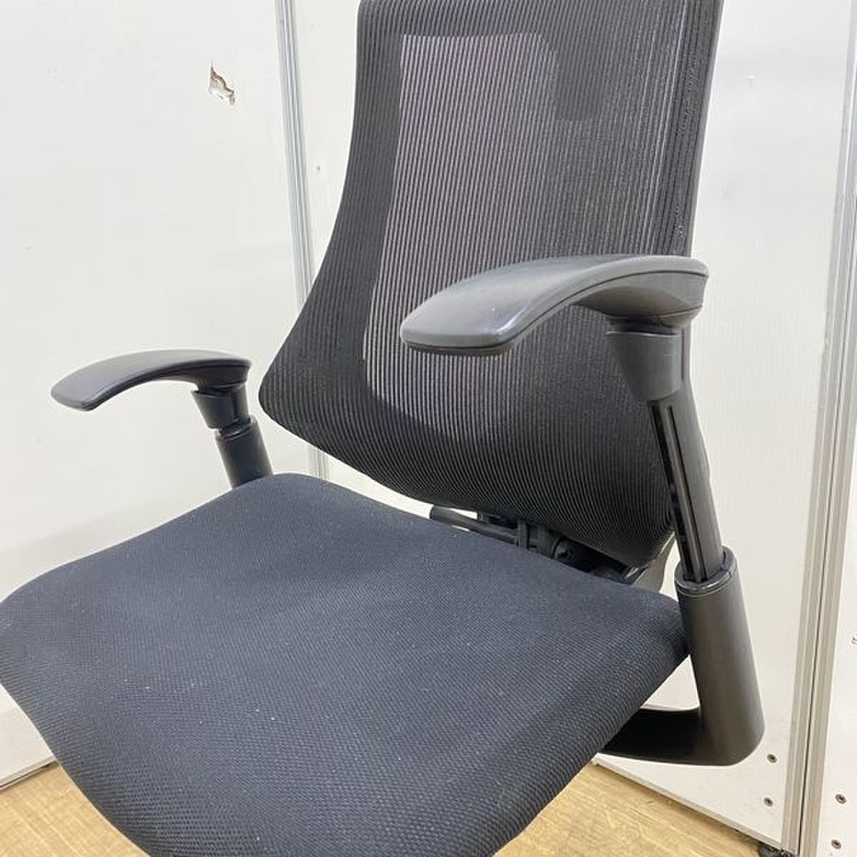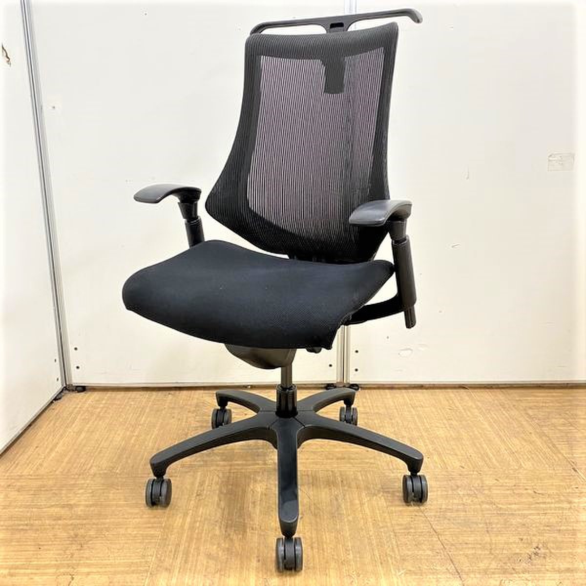 【三次元フォルムが腰にフィット!】希少なエラストマータイプ! ■イトーキ製 エフチェア 肘付 ブラック ハイバック ■姿勢の変化にフレキシブルに対応!