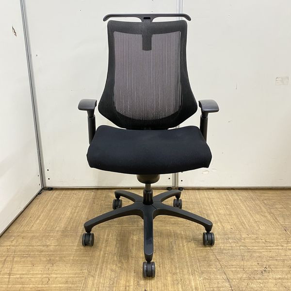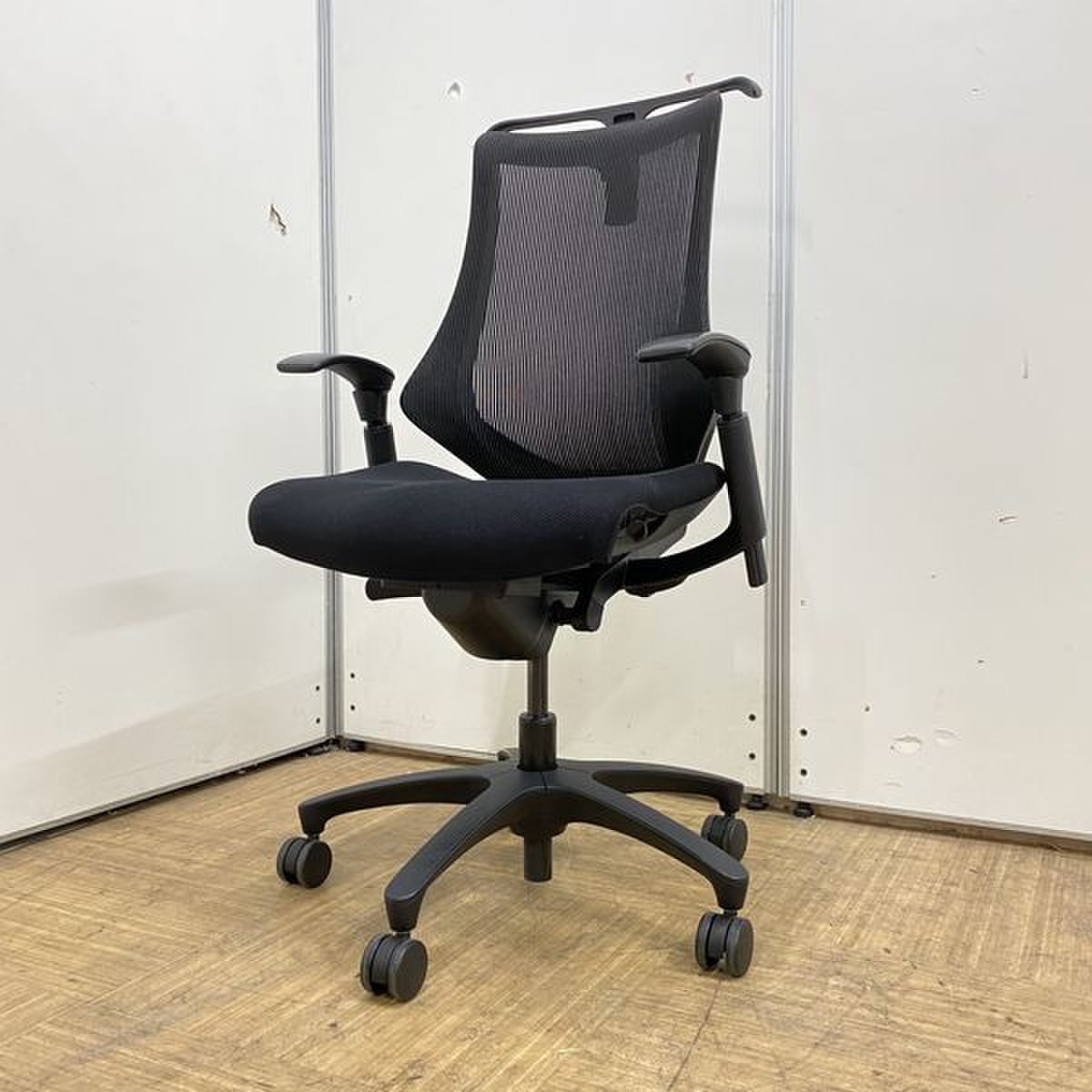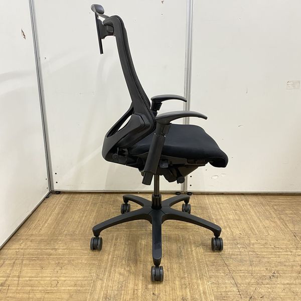 【三次元フォルムが腰にフィット!】希少なエラストマータイプ! ■イトーキ製 エフチェア 肘付 ブラック ハイバック ■姿勢の変化にフレキシブルに対応!