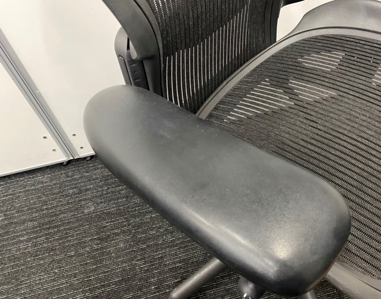 【★状態イマイチのためお安く!】■ハーマンミラー製 アーロンチェア Bサイズ 固定肘 ※キズあり・ランバーサポート無・昇降ガス圧弱めのためお安く!【訳あり特価品】