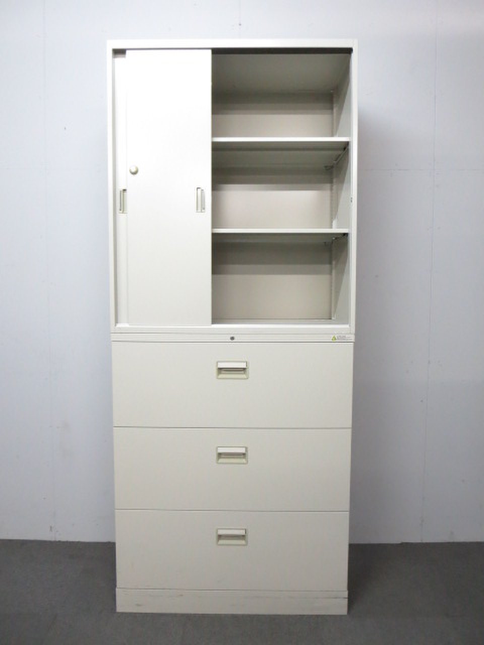 - 一部不具合ありそ引出の開閉不可、施錠不可、棚板無しといったの書庫の本来の効用を果たすための機能以外の一部が使用不可(例、扉、引出の開閉がしづらいなどがある。 )