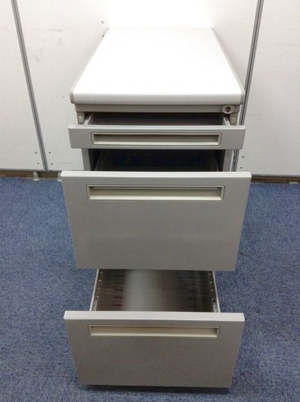 内田洋行製の定番ニューグレーカラーの3段脇机 FEEDです!!
