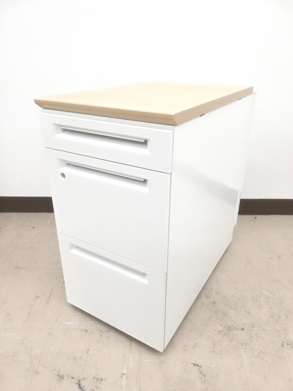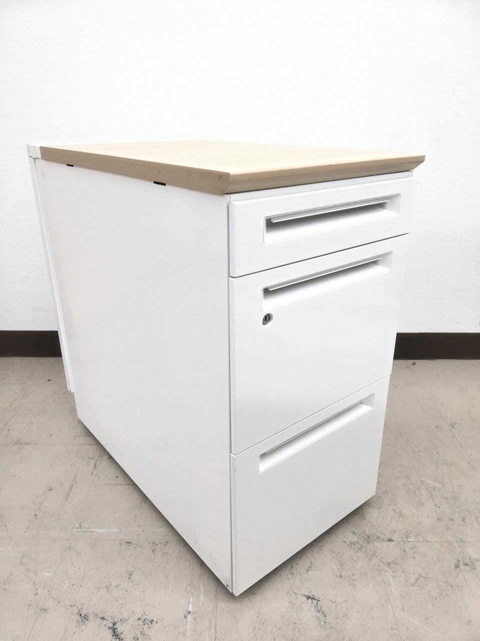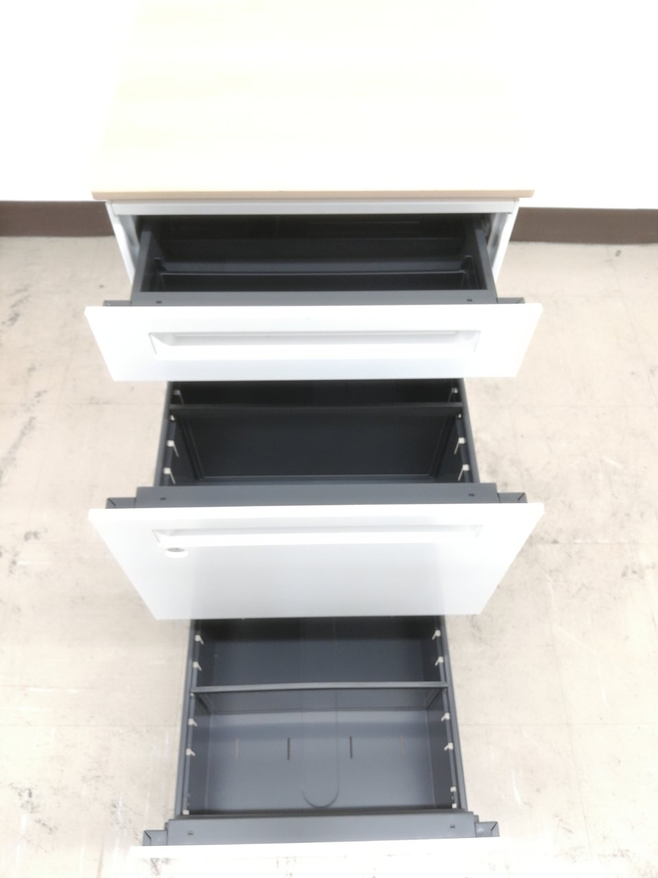 【2台入荷!】幅400㎜脇机3段型蓮田入店【奥行注意725mm】※天板ナチュラル=癒し色◆オカムラ製【RP】- 埼玉本店