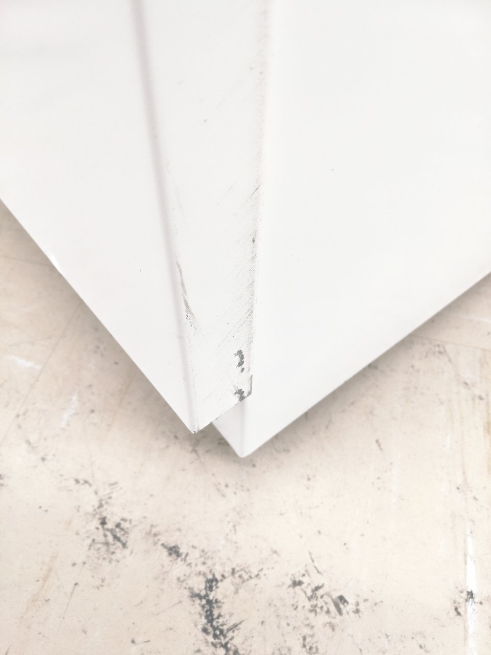 - かなり強い濃い黄ばみ・変色が商品全体にある。(例、天板、正面、背後、サイド部分にある。)