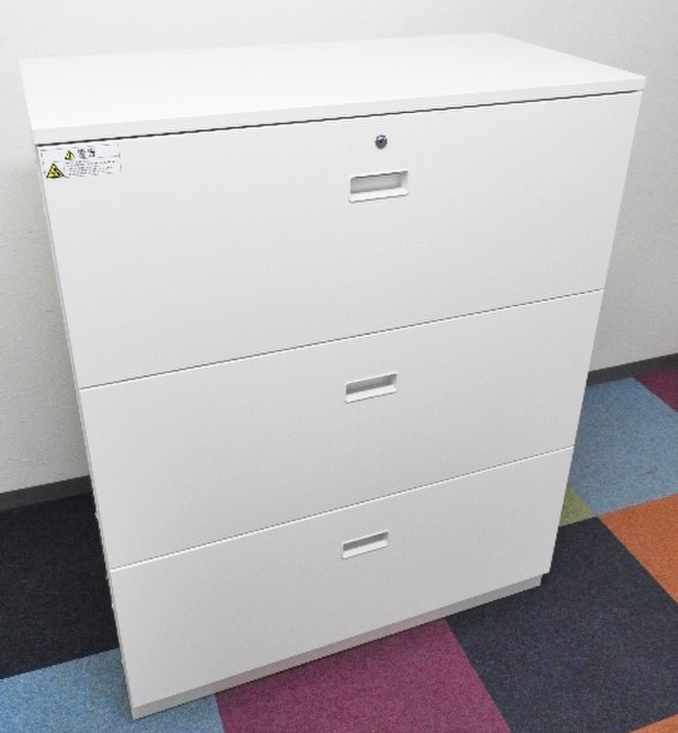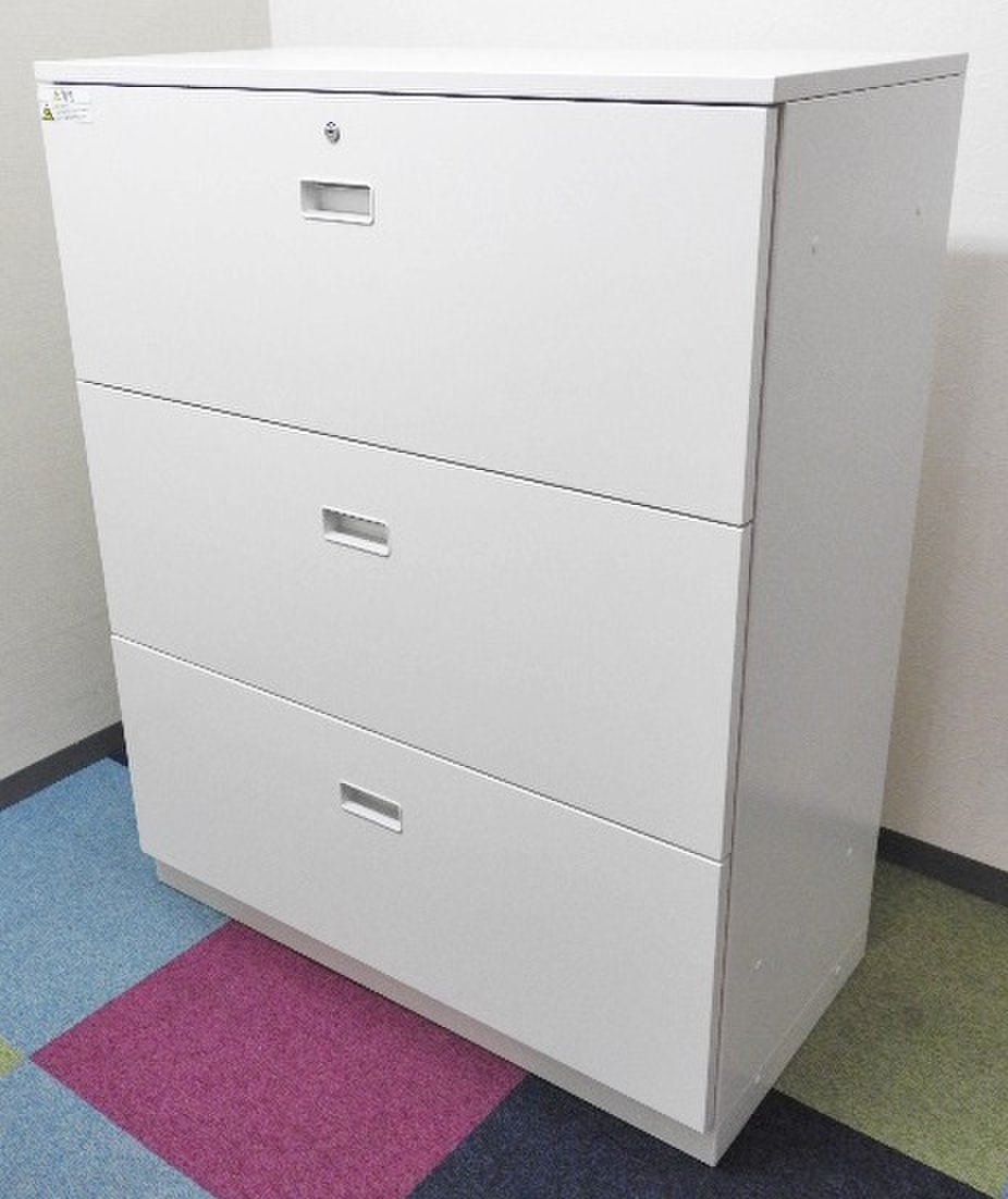 【A4ファイルも沢山収納可能!ホワイトカラーの人気シリーズ3段ラテラル書庫!】/オススメ(おすすめ) /人気商品【弊社使用欄:A01013834】3段ラテラル書庫/ローキャビネット/天板付き/ホワイト/シリンダー錠/ITOKI/THIN LINE■イトーキ/シンライン※取っ手部分日焼あり