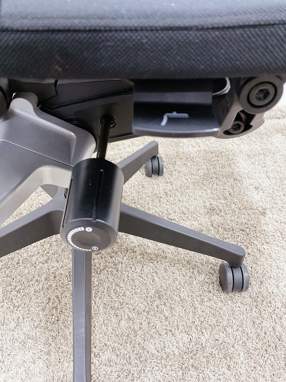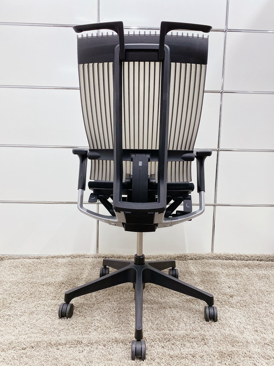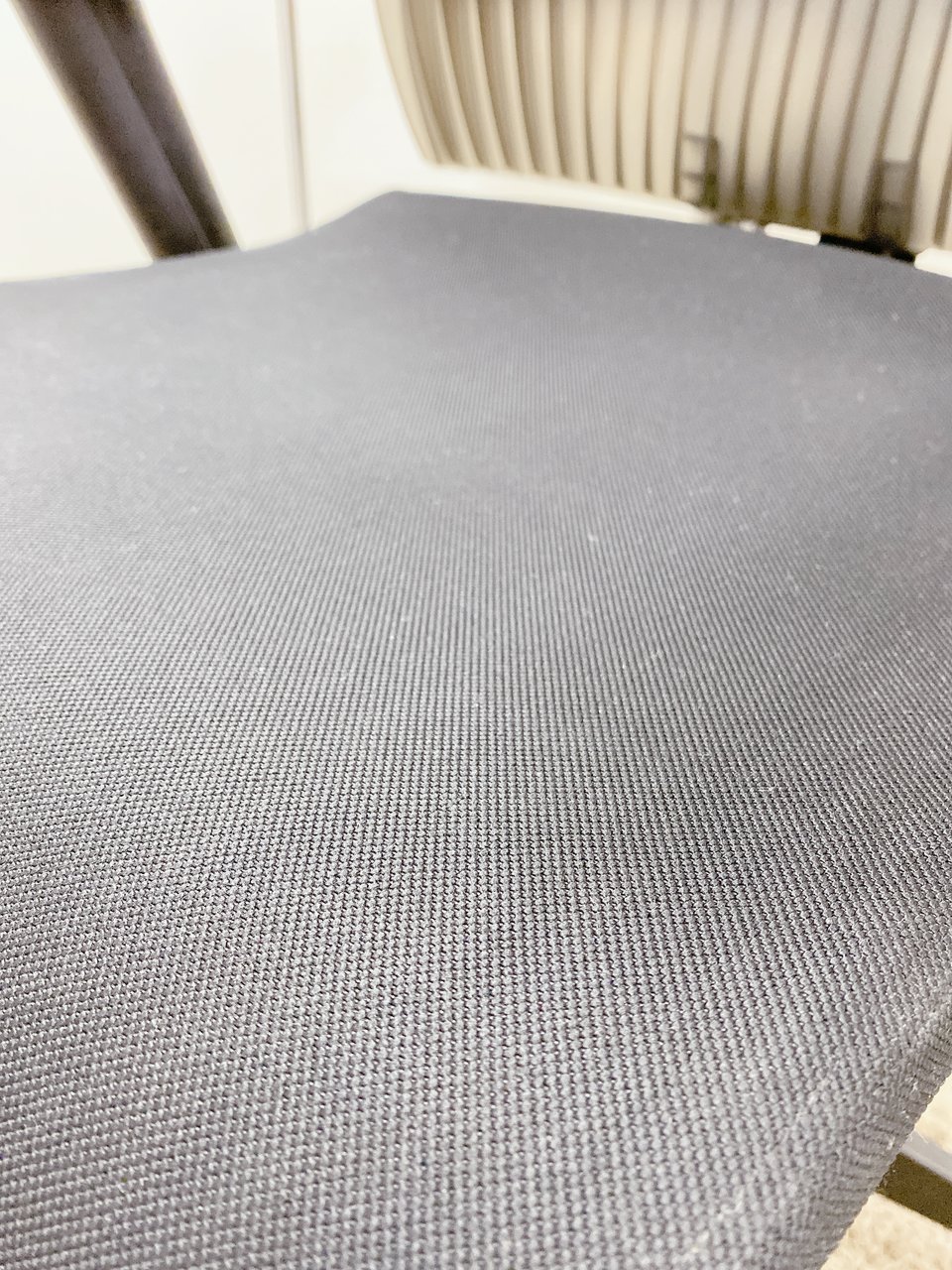 見た目は少し硬そうに見えるエラストマー素材ですが、座ってみると程よいしなり具合のやわらかな座り心地で、背中が痛くなるようなことはまるでありません。面ではなく線で支えることで、背面の通気性の良さは抜群です。