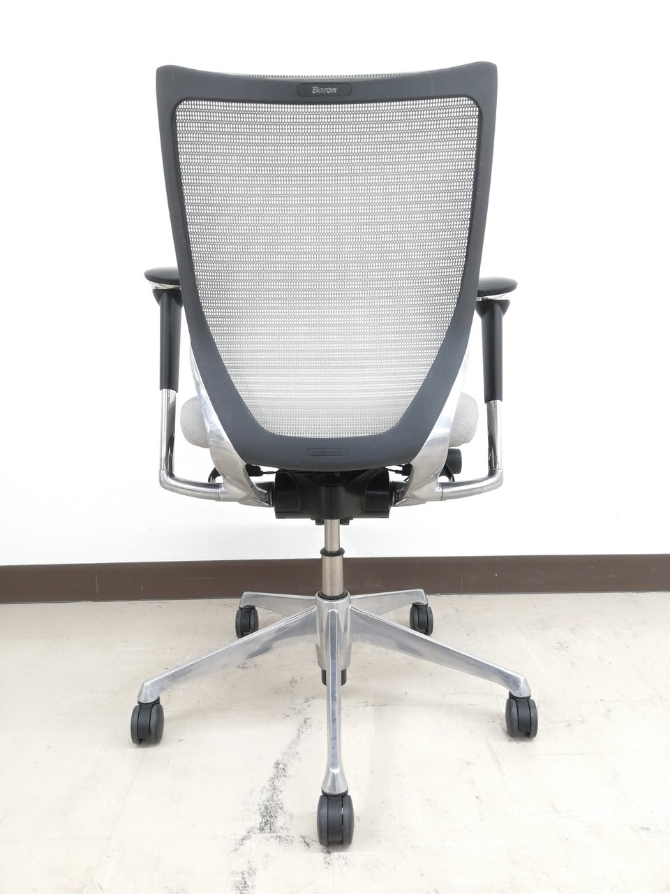 発売当時、既に人気を博していたオカムラの高級チェア、コンテッサから手元で座高調整ができるスマートオペレーション機能を取り除くなどしてリーズナブルにしたのがバロンです。その際に少しだけコンパクト化されました。そのことが、日本人の体格、日本のオフィス、家庭環境に適し、国内で多くのシェアを獲得する要因の一つになったのではないかと思います。