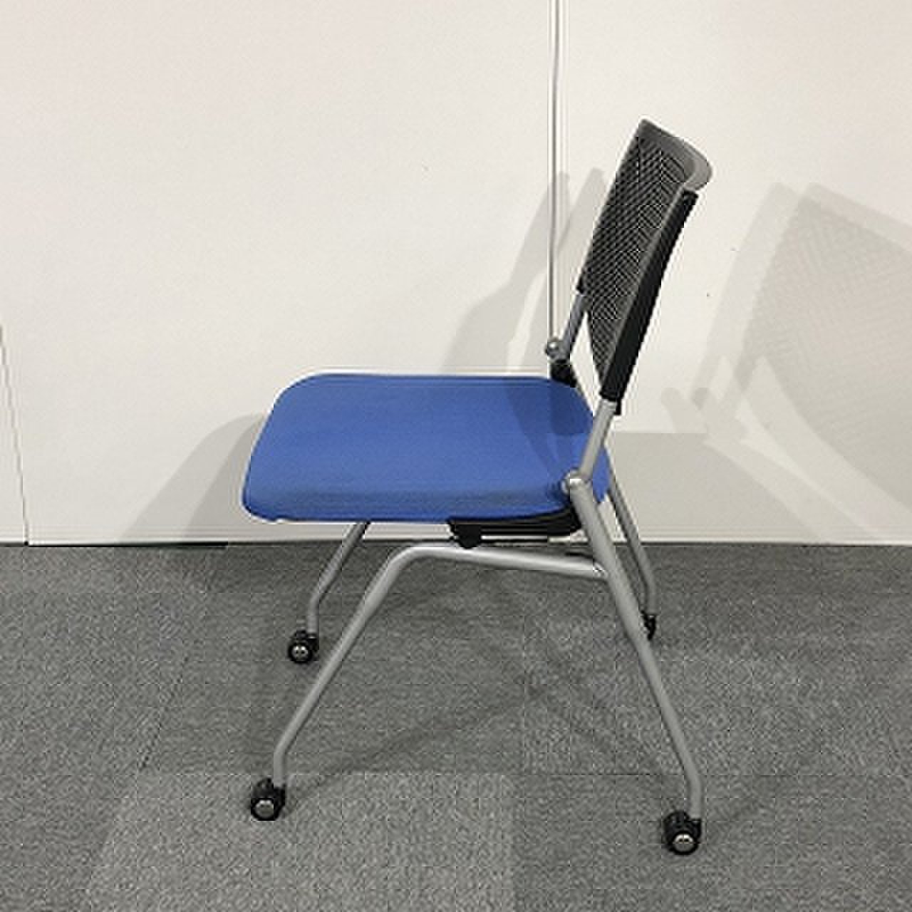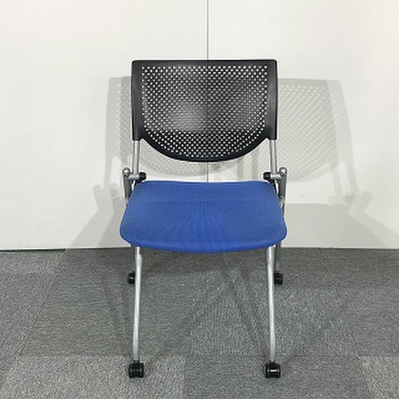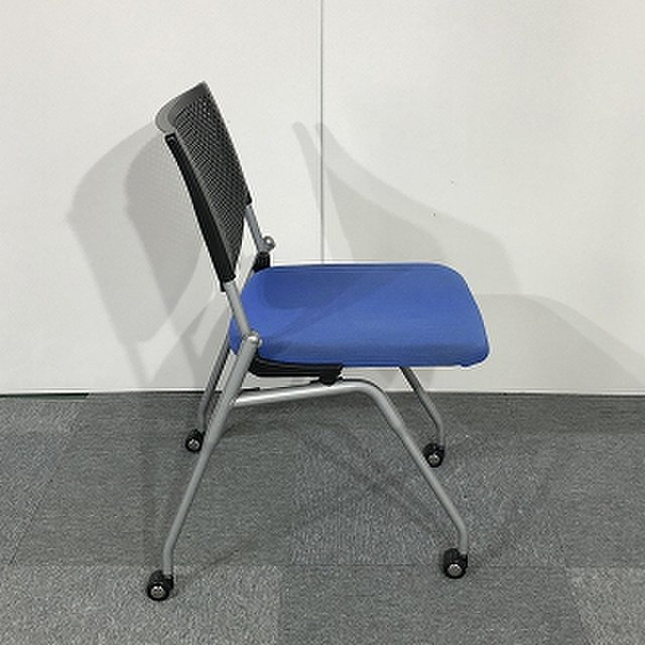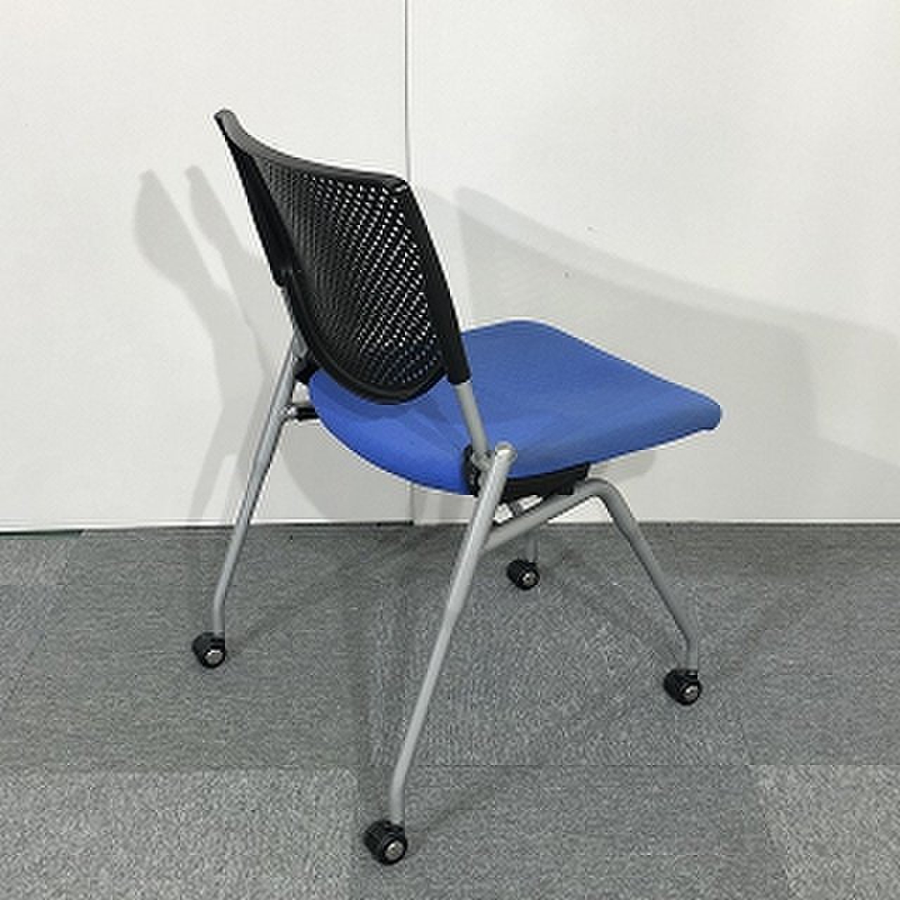 【会議室にピッタリ!コンパクト設計で収納がしやすい!】■オカムラ プロスタックシリーズ ネスティングチェア ミディアムブルー ■フレキシブルに使えるキャスター付!【在庫入替セール品!(本在庫限定価格)】