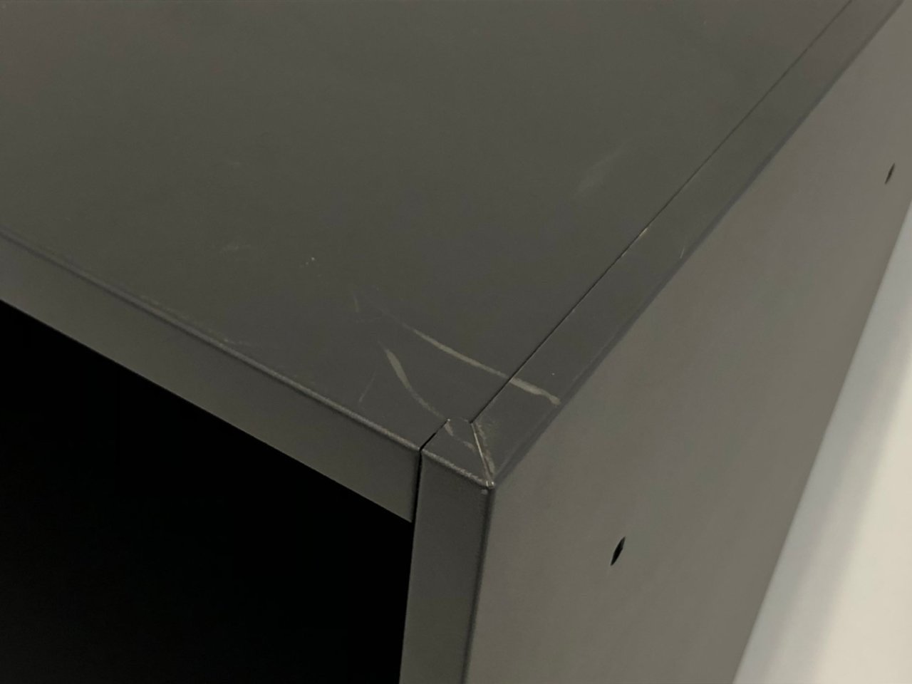 - 目立つ箇所あり傷・凹みが多数、深い傷・凹みが一部ある。(例、天板、正面、背部、サイド部分にある。)