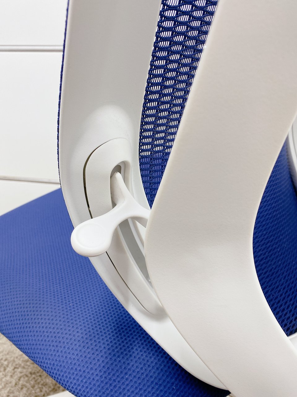 - 座面右下のダイヤル操作で、リクライニングの強弱調整が行えます。これまでのダイヤル式よりも、少ない回転数で、最弱?最強の調整が可能です。
