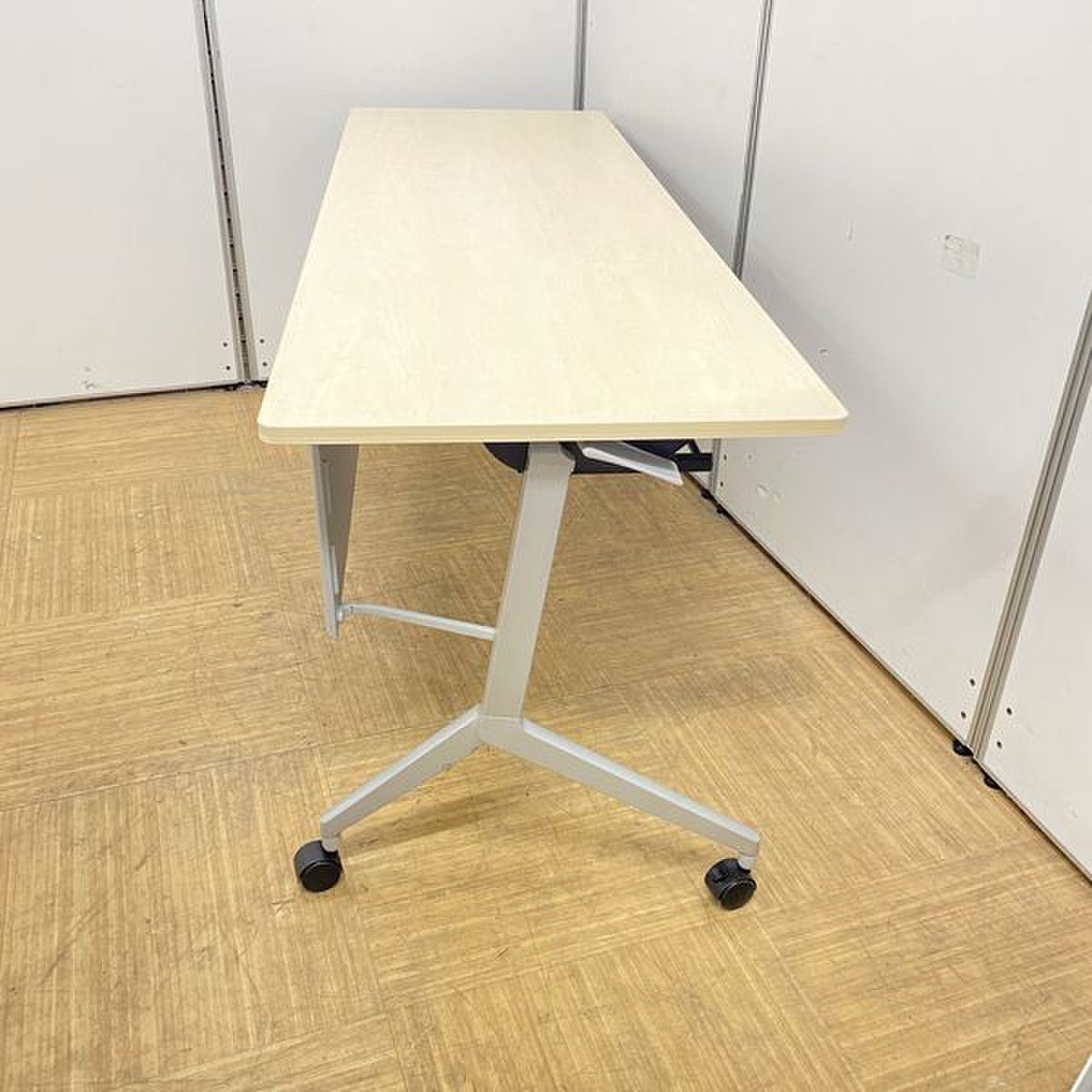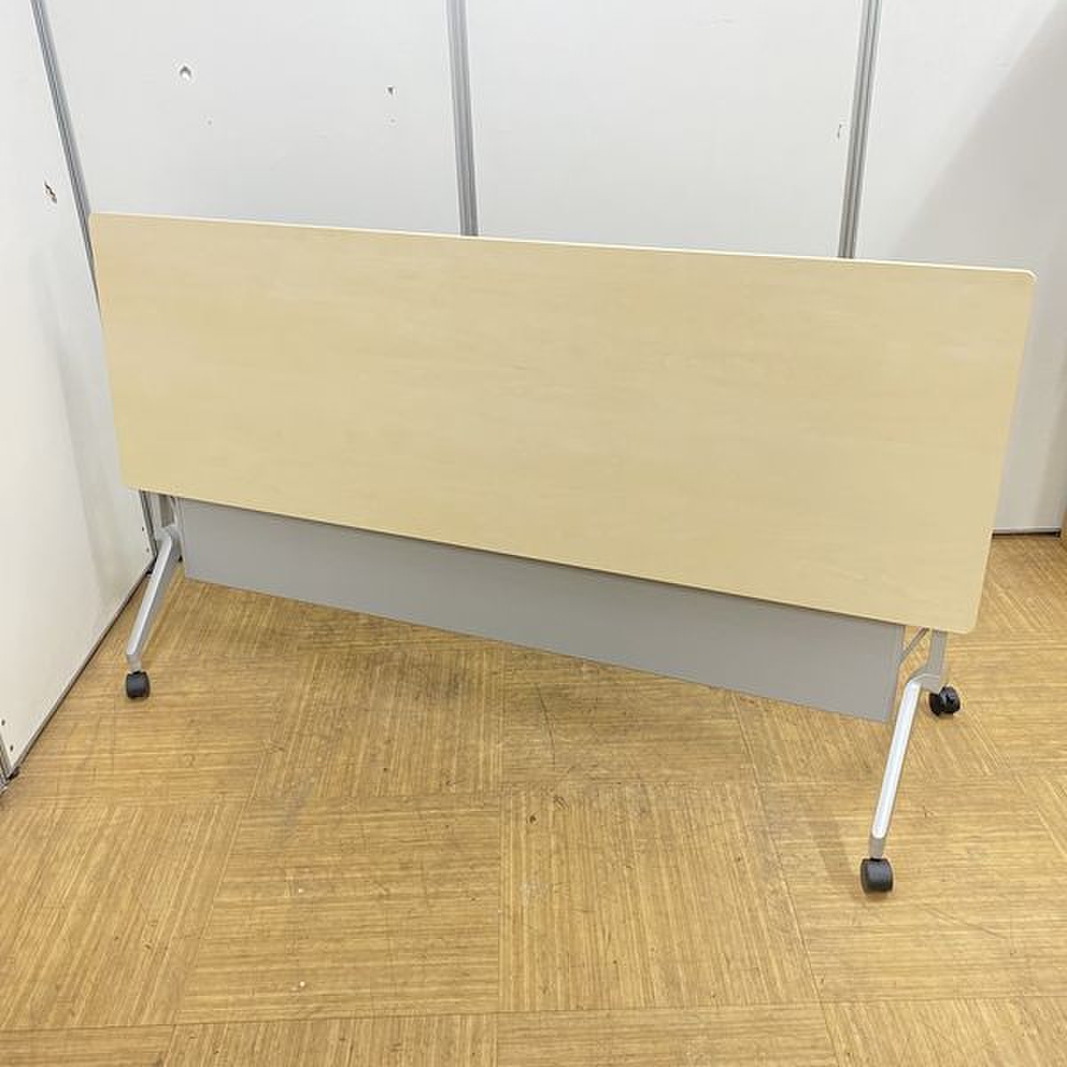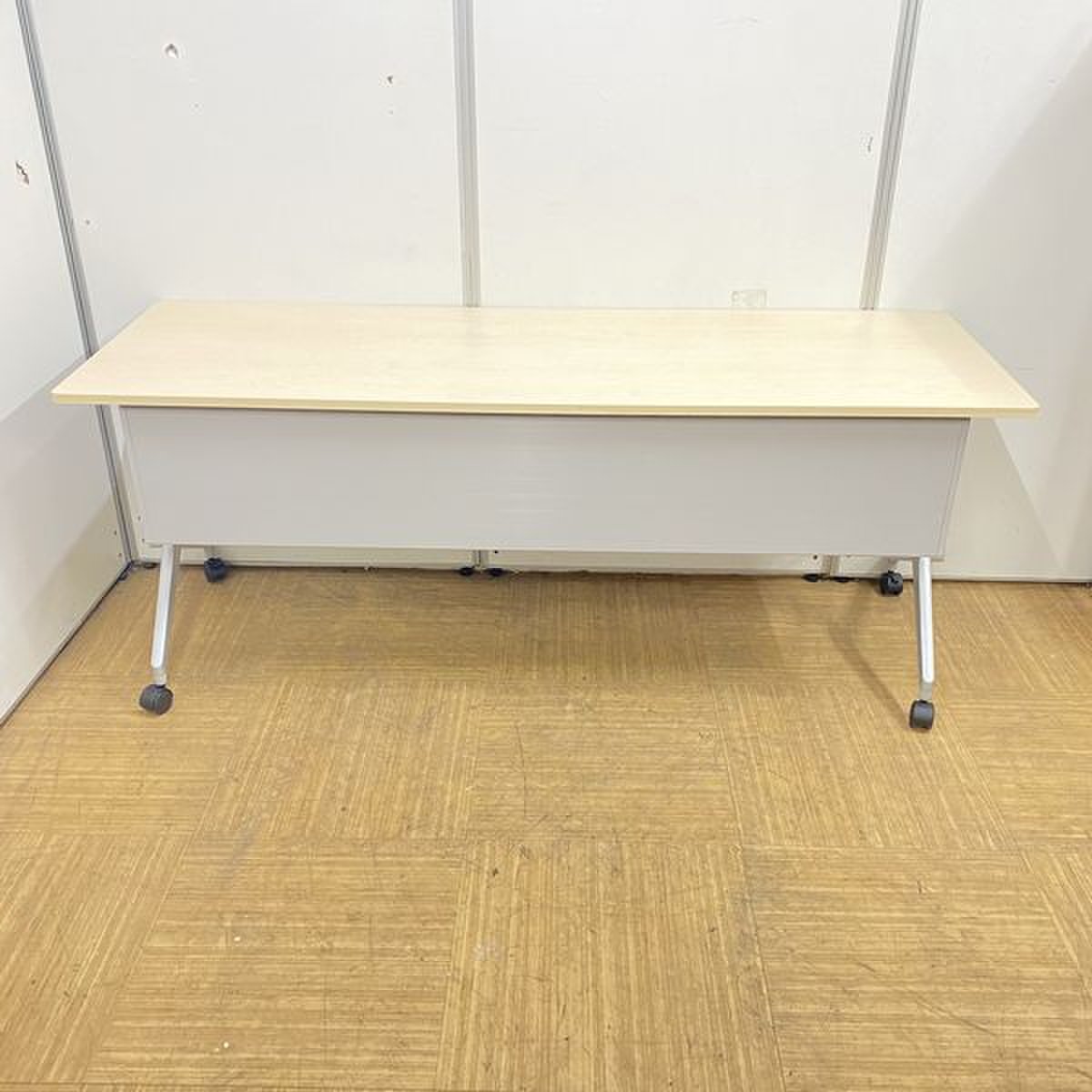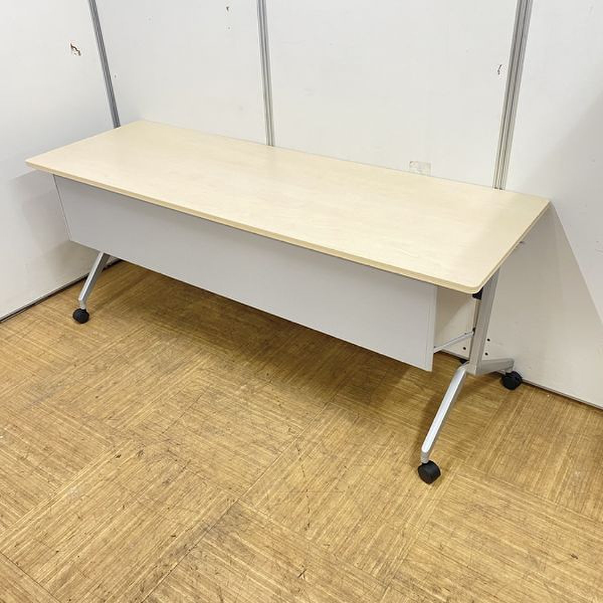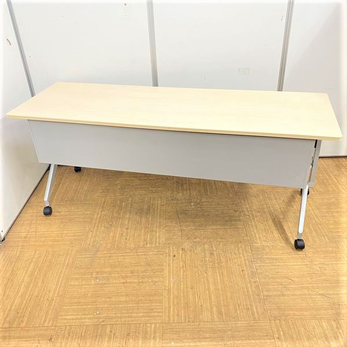 【2024年製!綺麗な状態です!】コクヨ リーフライン サイドスタックテーブル 木目ナチュラル 幕板あり 会議机 収納 折り畳みテーブル セミナー用 福岡 中古家具 安い 九州最大級《オフィスバスターズ福岡博多店は、福岡を拠点として、日本全国へ中古オフィス用品・オフィス家具を提供しております》
