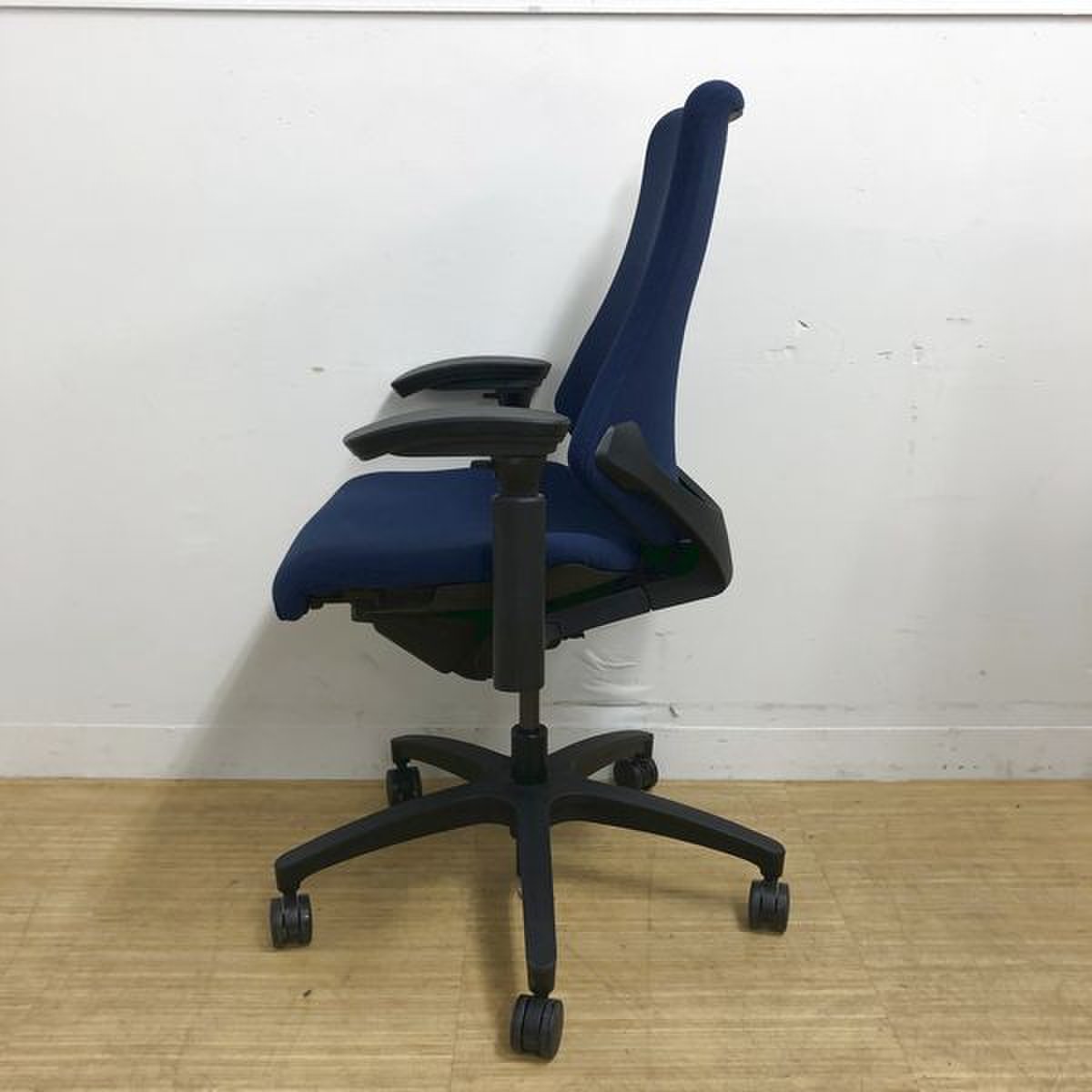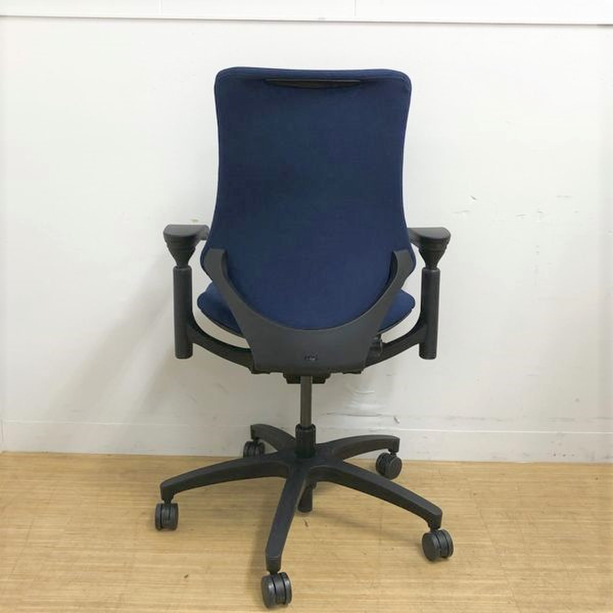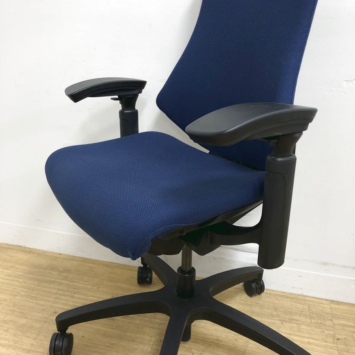 【包み込まれるフィット感!】 ■イトーキ製 エフチェア 肘付 ネイビーブルー ■デスクワークの疲労を軽減!