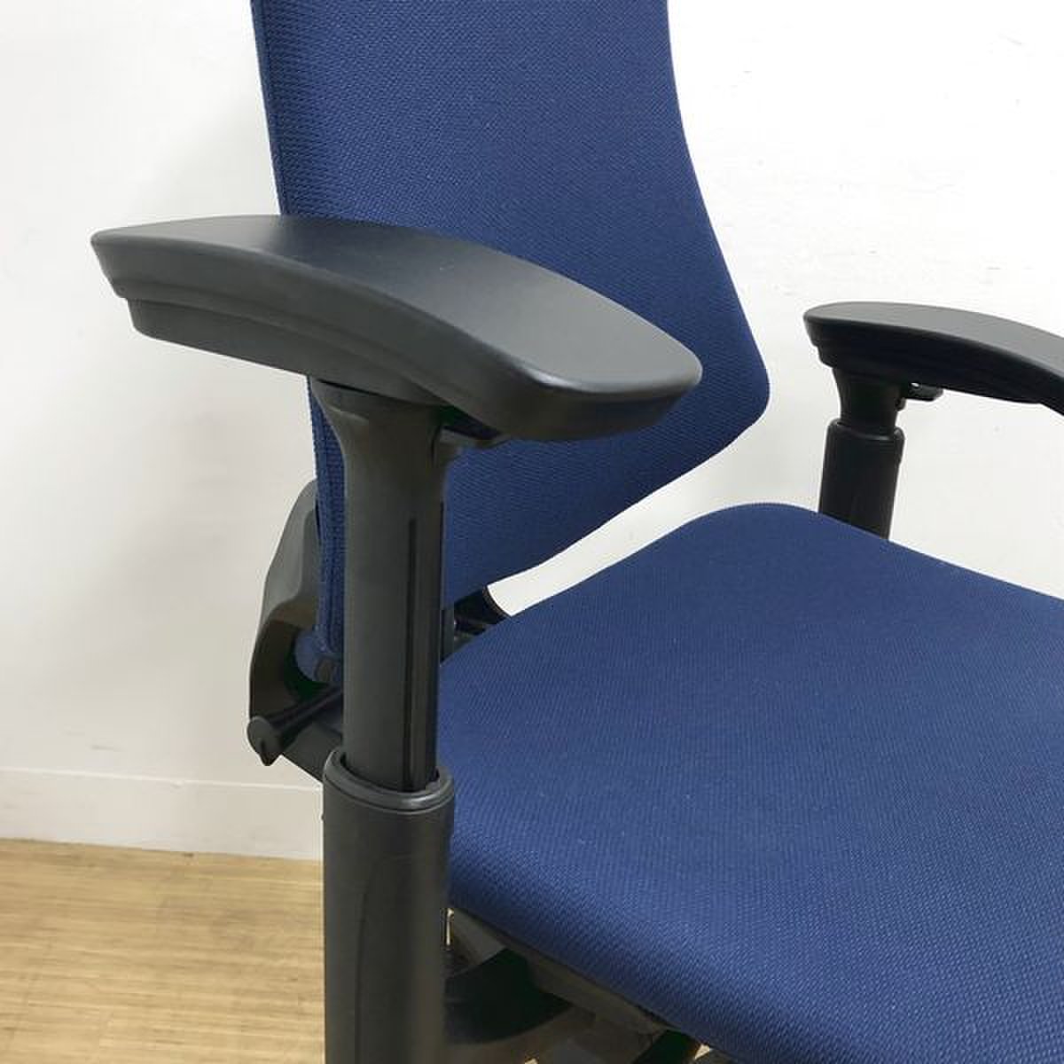 2018年製の美品 マルチスライドアーム搭載 ブラック×ネイビーブルーのかっこいいデザイン イトーキ エフ(f)- 名古屋千種店