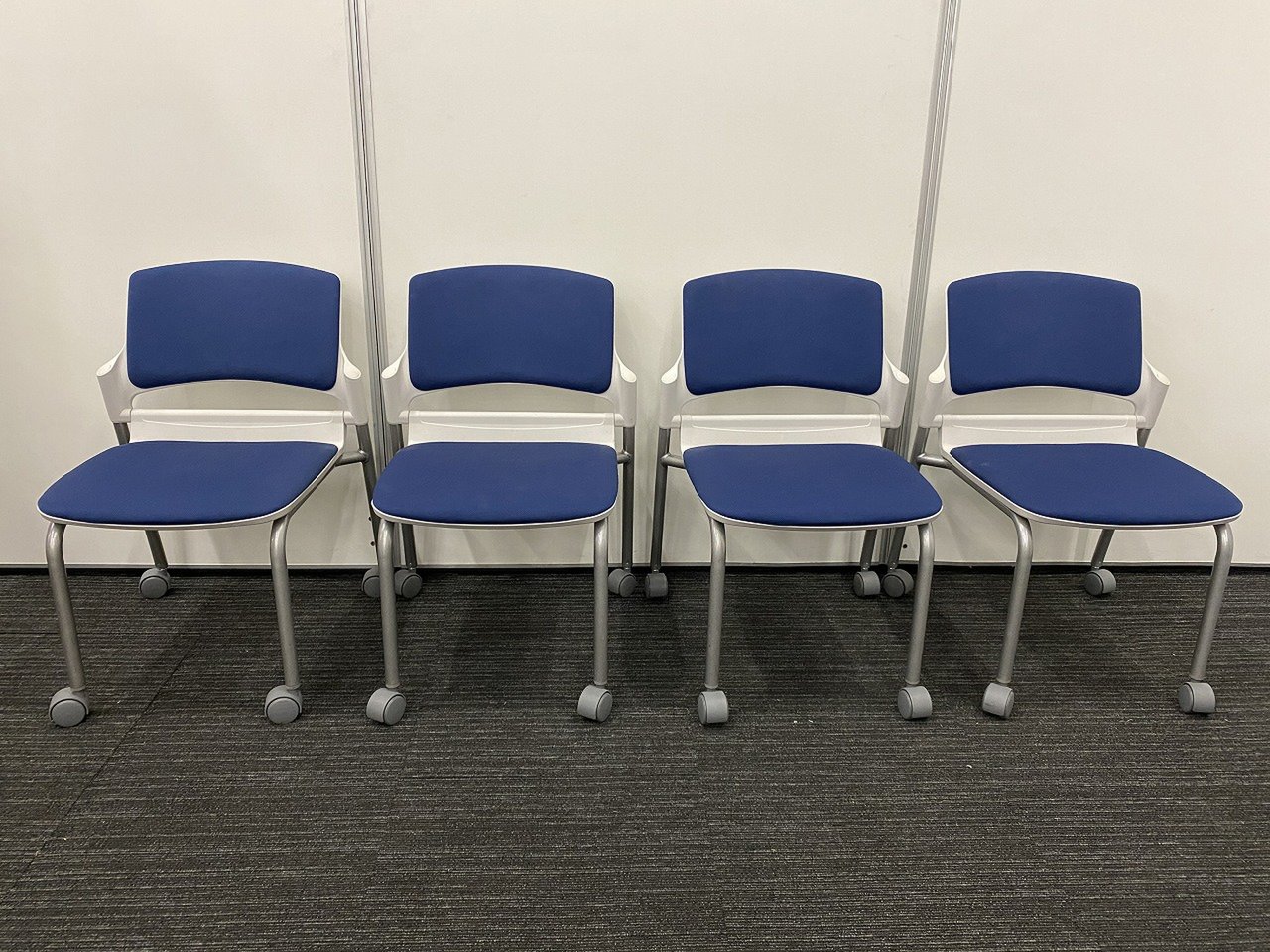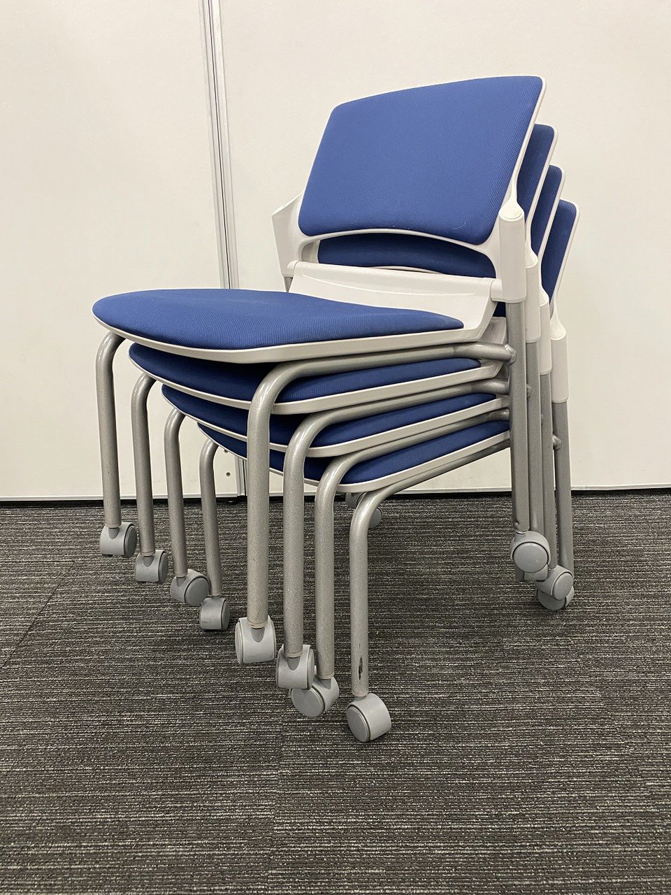 【残り2脚の為、お安く!】【キャスター付きで使いやすい!ミーティングに最適!】■ウチダ(UCHIDA)製 MF-180シリーズ スタッキングチェア ミーティングチェア ■キャスター付き ■レイズンブルー×ホワイトシェル