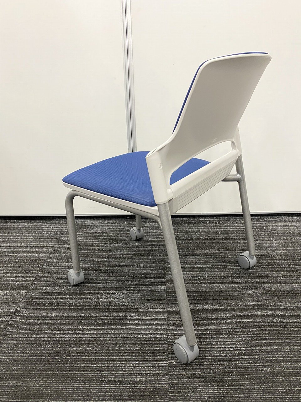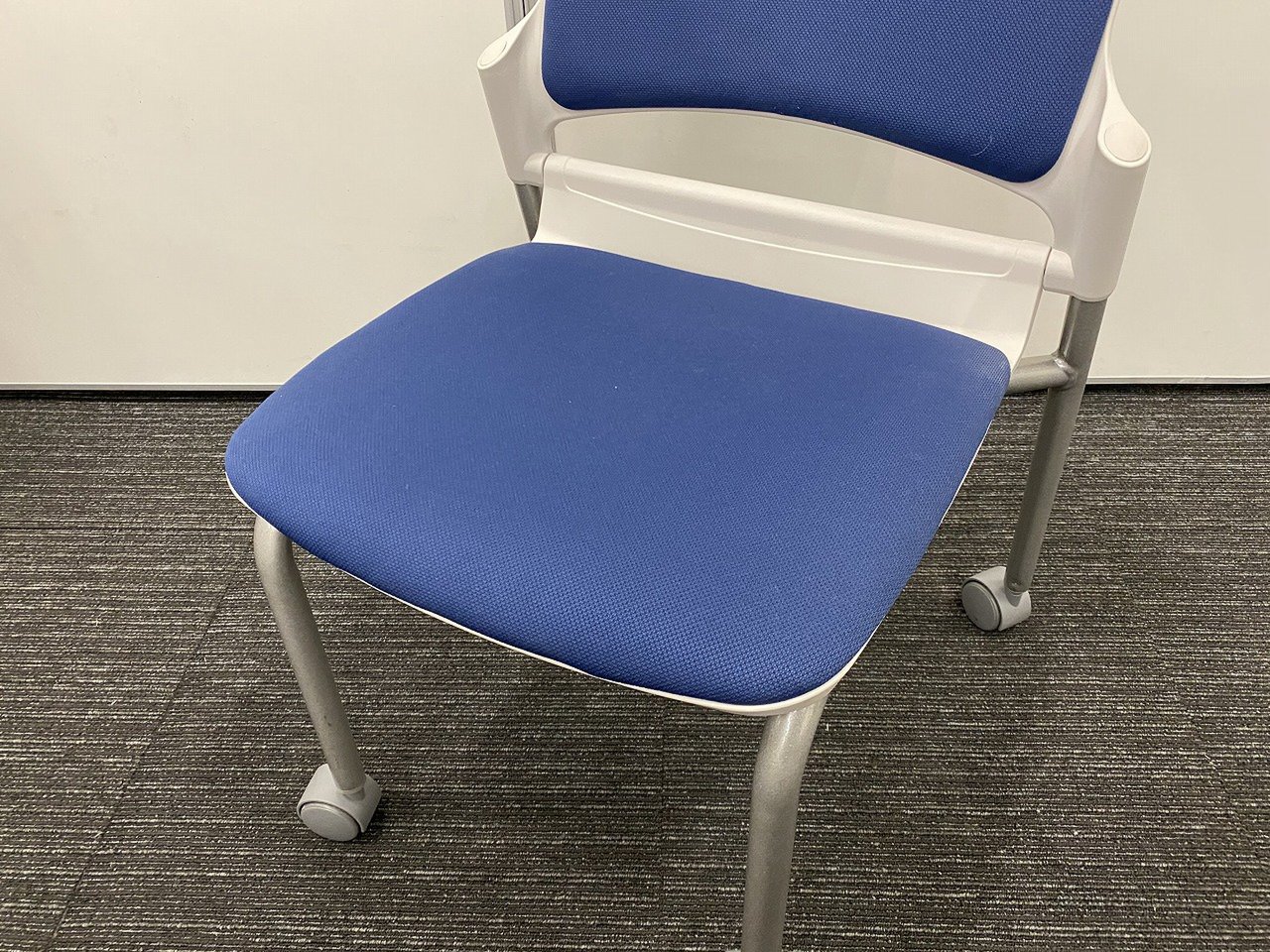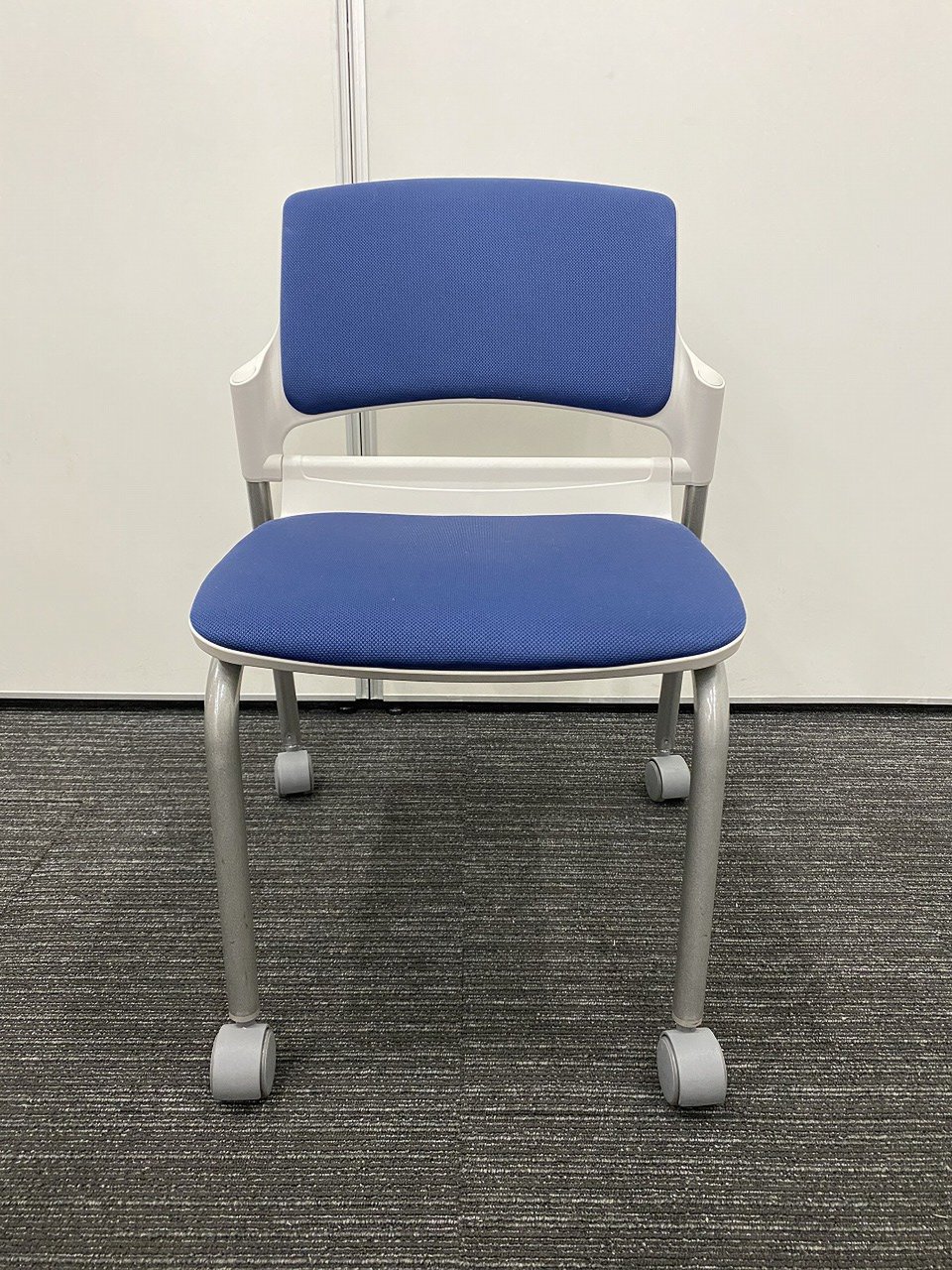 【キャスター付きで使いやすい!ミーティングに最適!】■ウチダ(UCHIDA)製 MF-180シリーズ スタッキングチェア ミーティングチェア ■キャスター付き ■ブルー×ホワイトシェル【2509】弊社使用欄【A01032801】