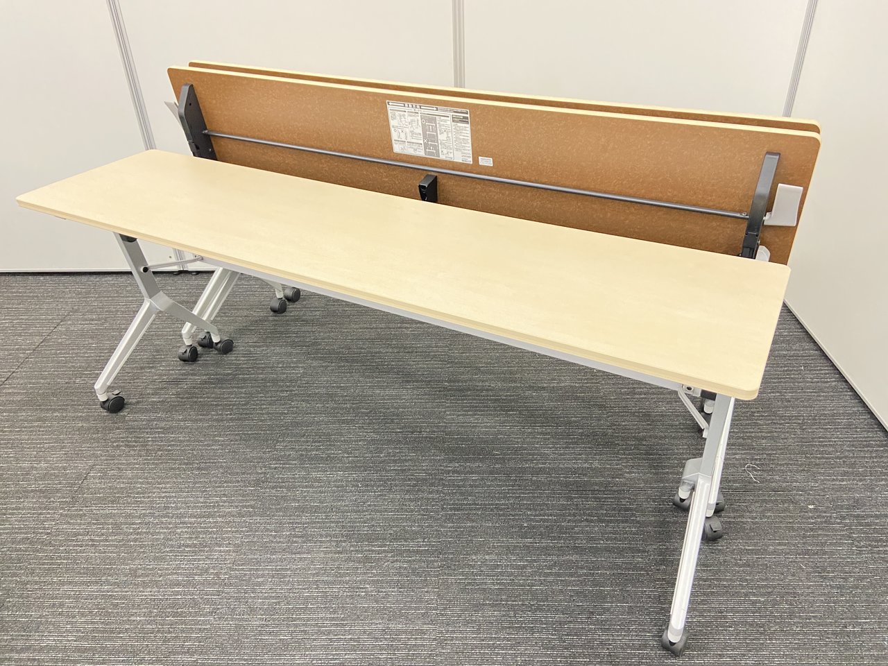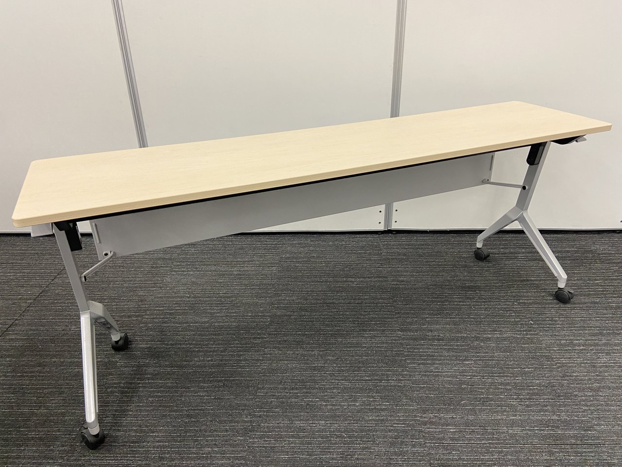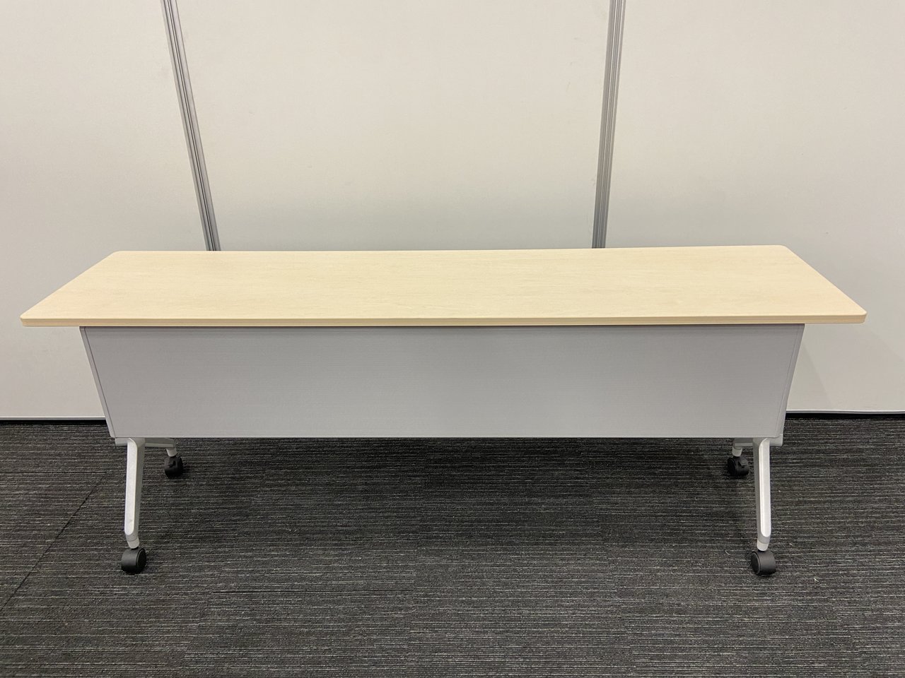 【会議・研修室などに・使わないときは畳んで省スペース!】■コクヨ(KOKUYO)製 リーフライン(Leafline)シリーズ サイドスタックテーブル フラップテーブル W1800×D600㎜ ■木目ナチュラル天板 ■幕板付き 【2~3名での使用に最適】