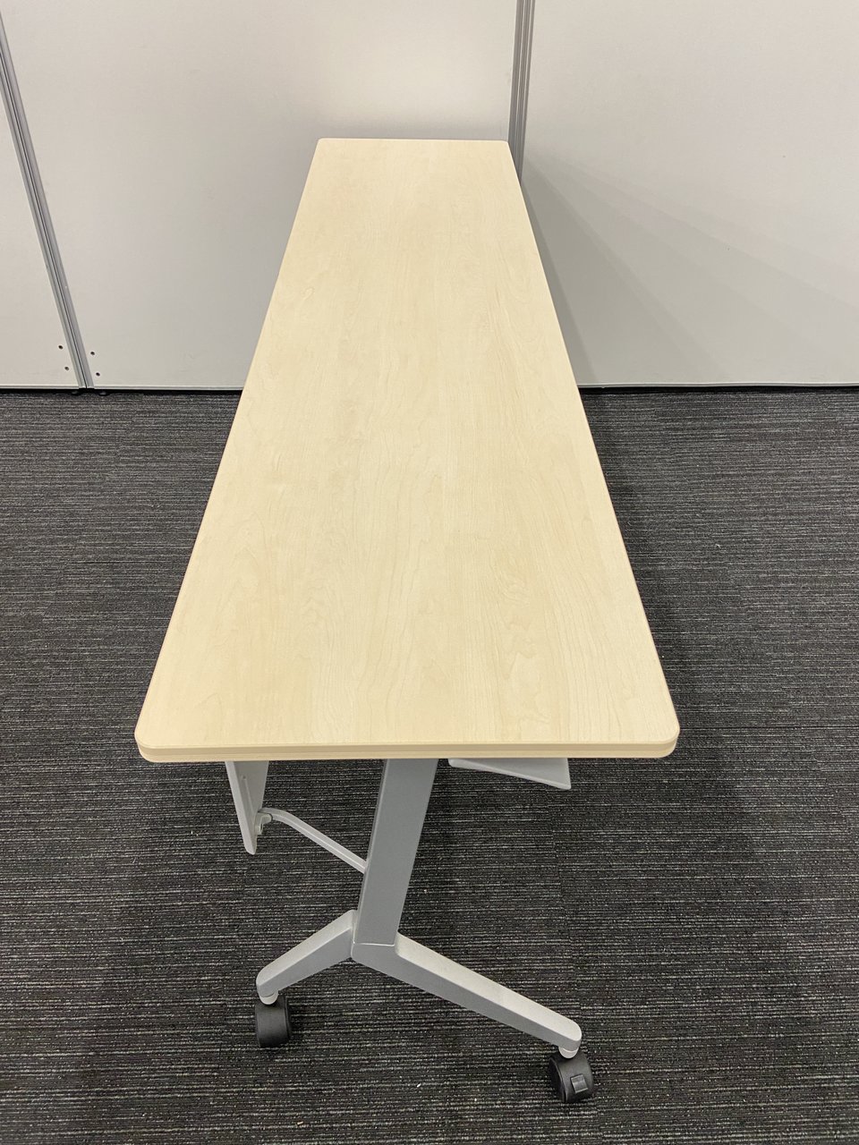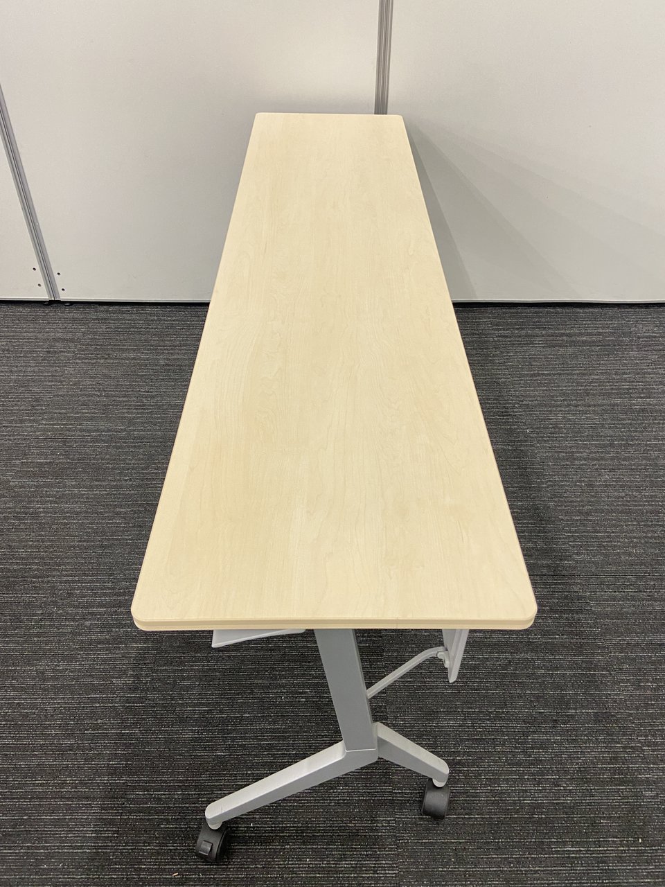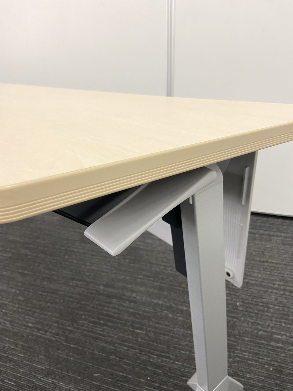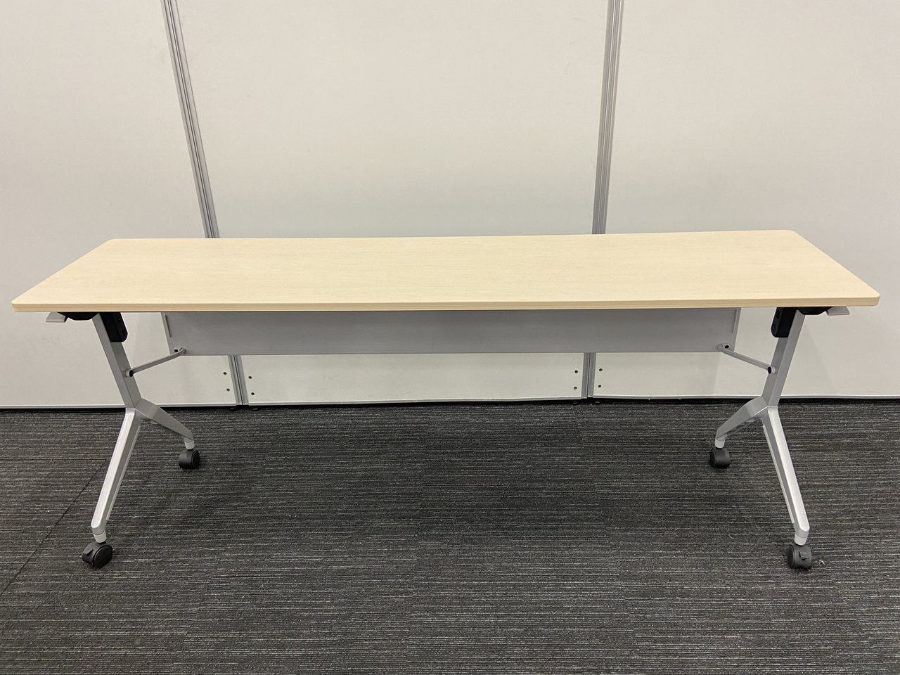 【会議・研修室などに・使わないときは畳んで省スペース!】■コクヨ(KOKUYO)製 リーフライン(Leafline)シリーズ サイドスタックテーブル フラップテーブル W1800×D600㎜ ■木目ナチュラル天板 ■幕板付き 【2~3名での使用に最適】