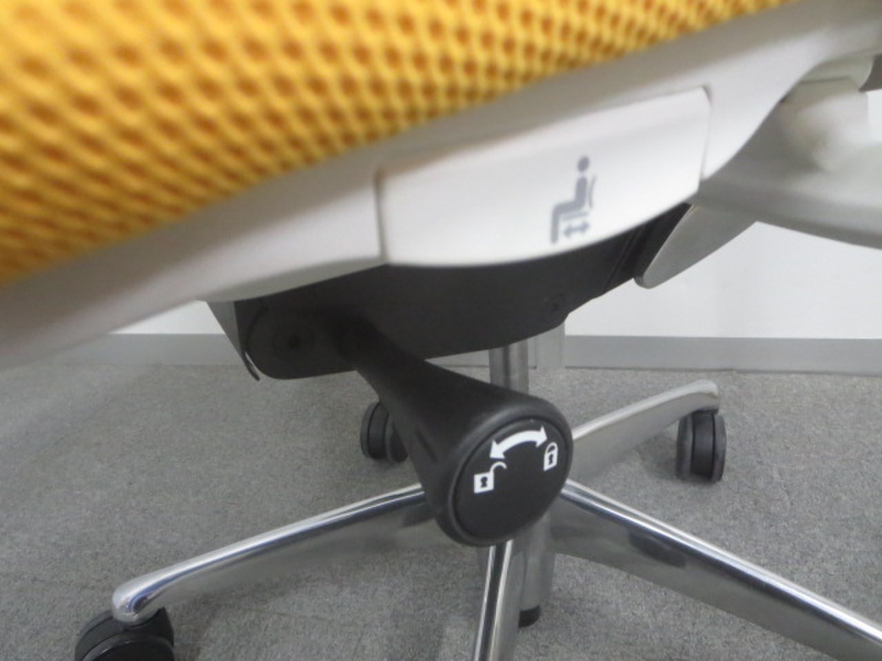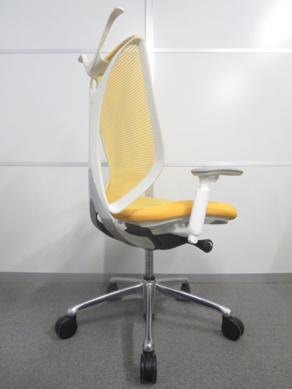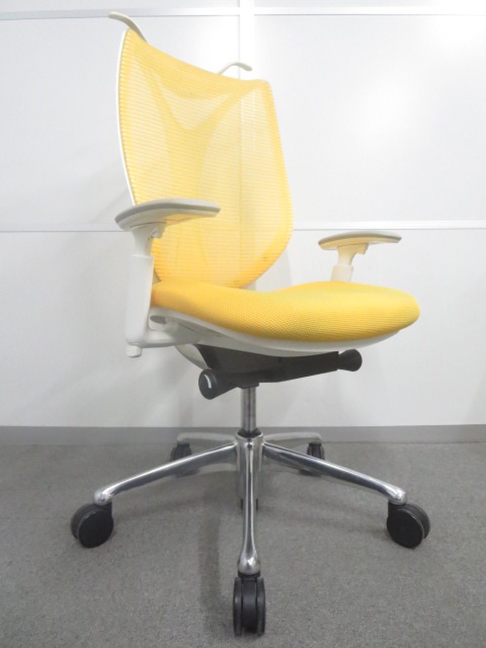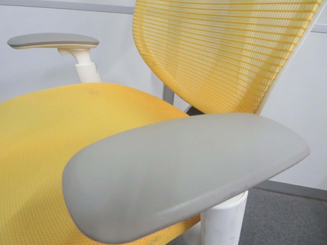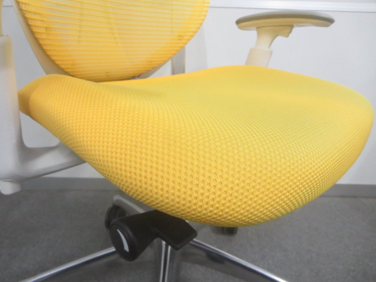 【しなやかな座り心地!】■オカムラ製 サブリナチェア マンゴーイエロー ■アジャストアーム ハンガー付- 川崎店