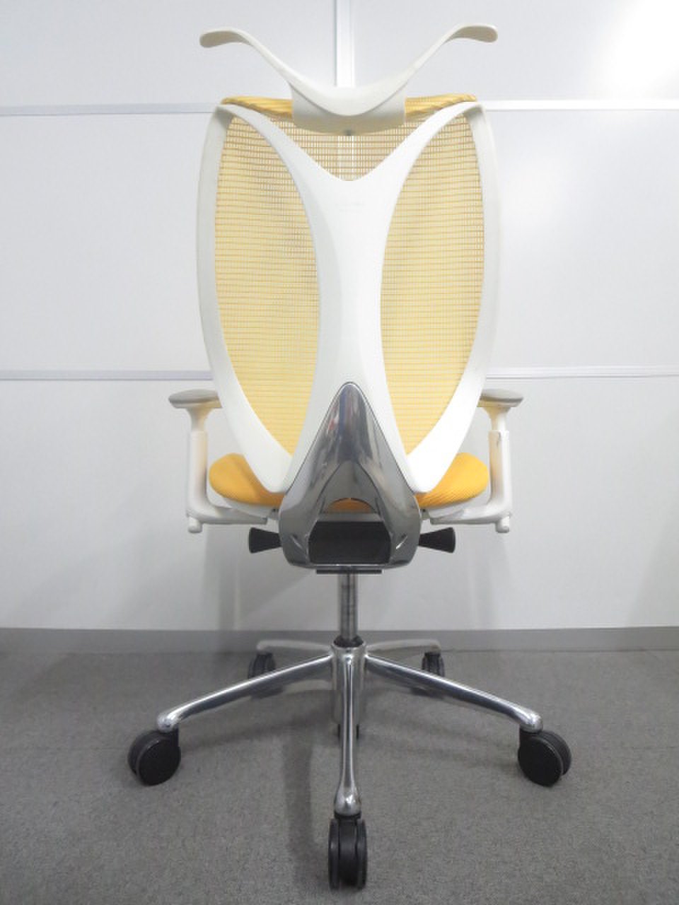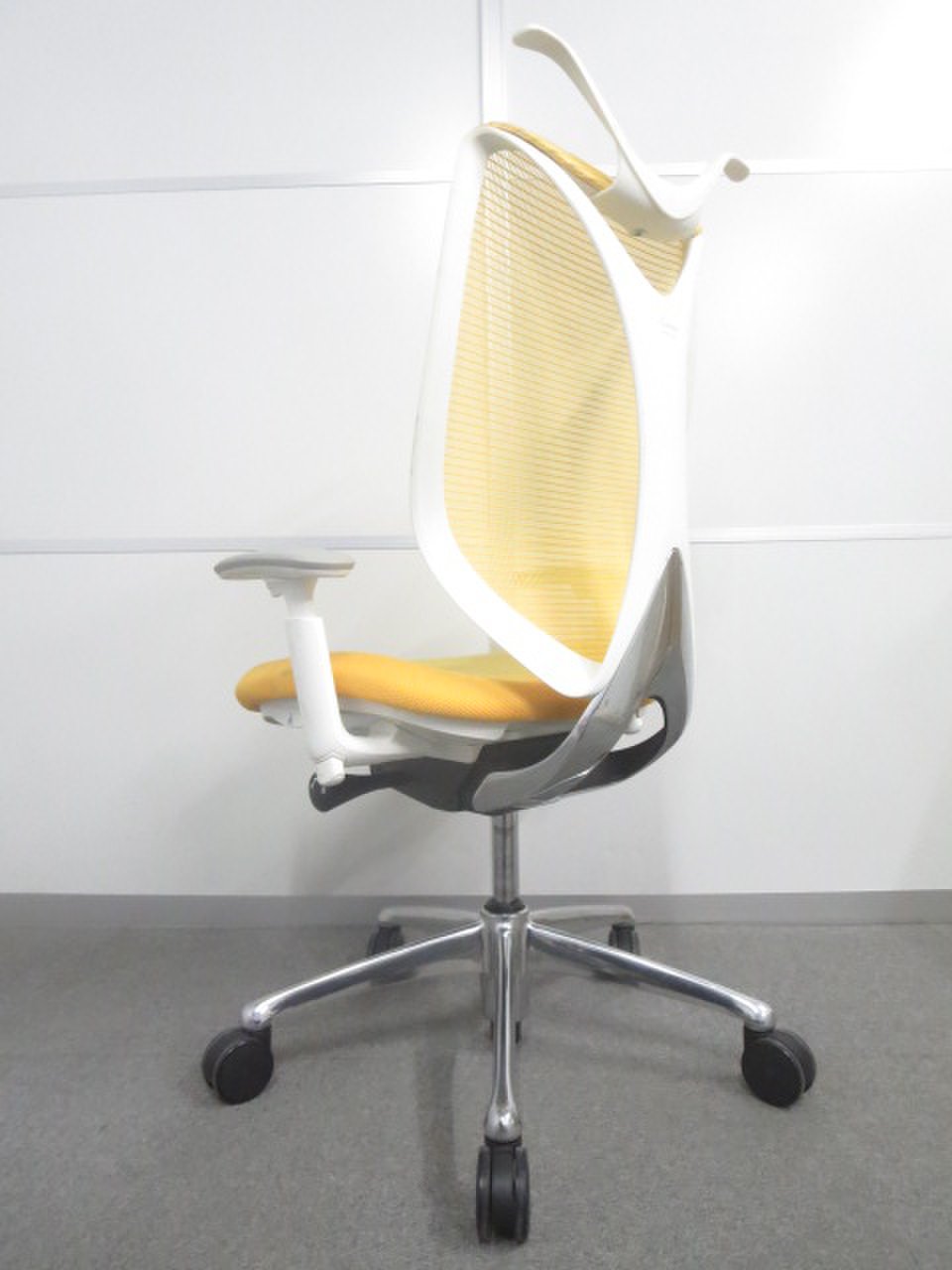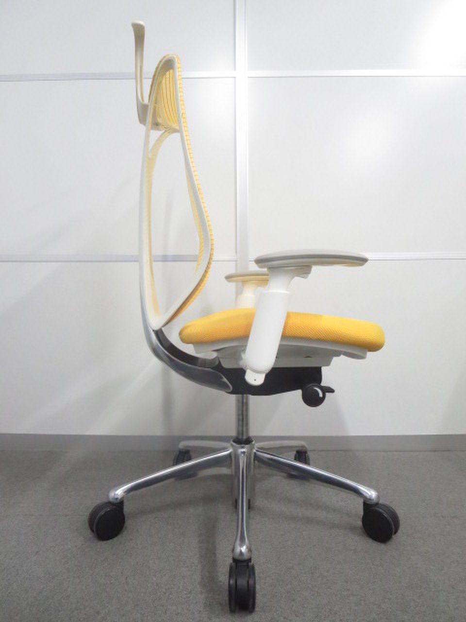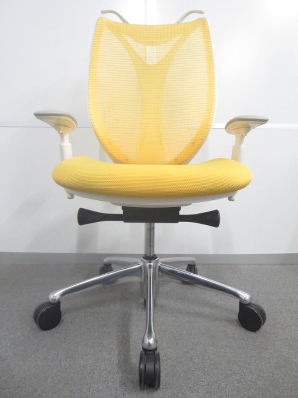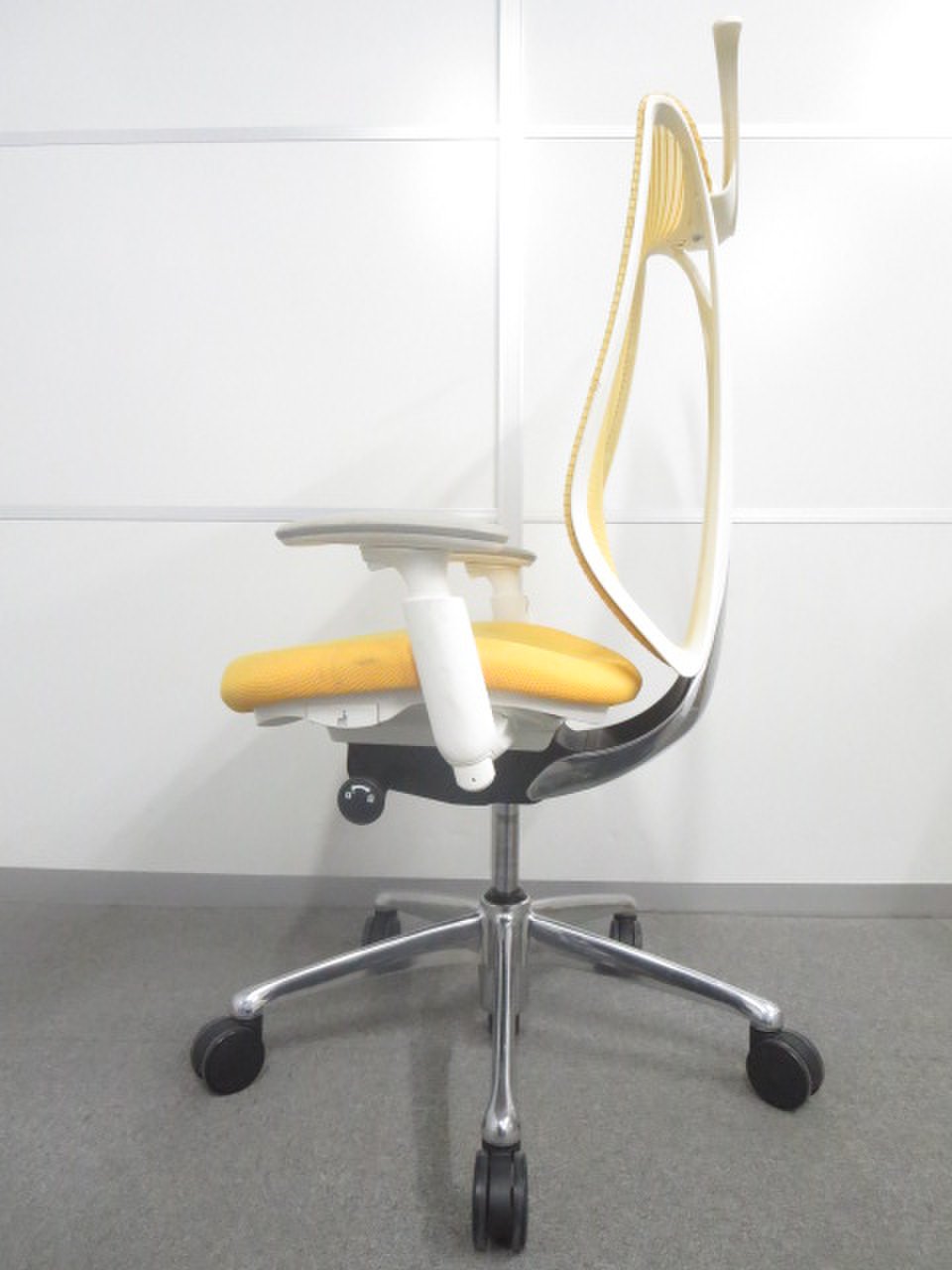 【しなやかな座り心地!】■オカムラ製 サブリナチェア マンゴーイエロー ■アジャストアーム ハンガー付- 川崎店