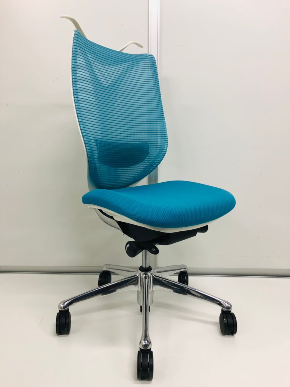 ◆オカムラ/サブリナ/ブルー ◆ハイバック/肘無し/ポリッシュ テレワークにも!【OI】