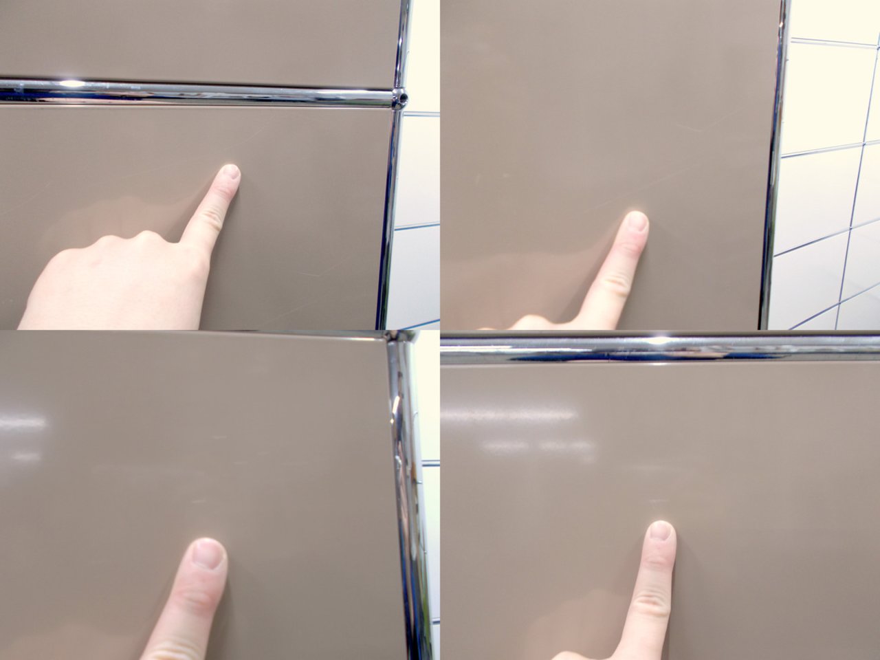 最上段の扉に凹みがあります。(写真8枚目参照)