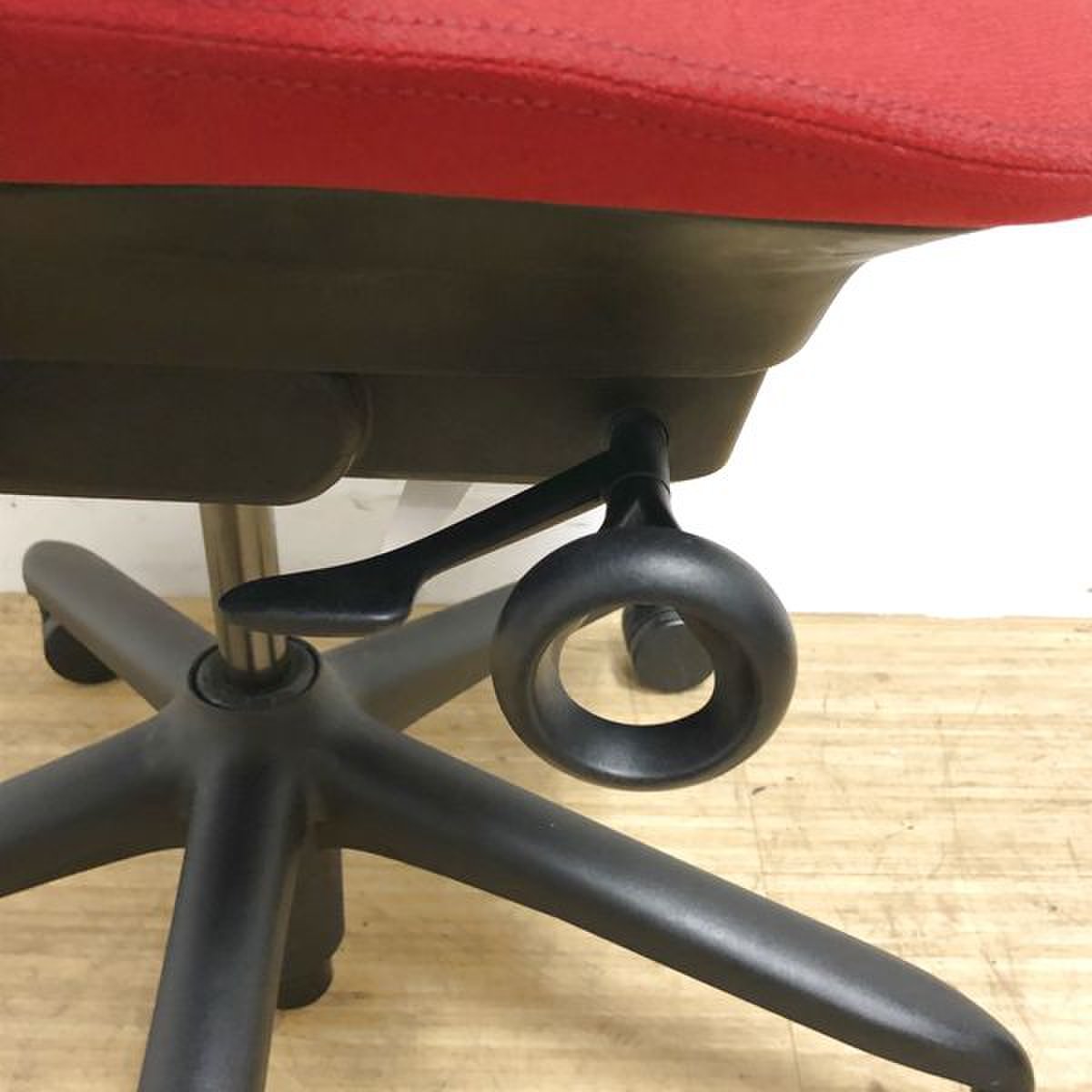 - 座ったまま、レバー操作一つで、簡単に座面を前傾できます。前傾姿勢を取ることが多いデスクワーカーに最適です。