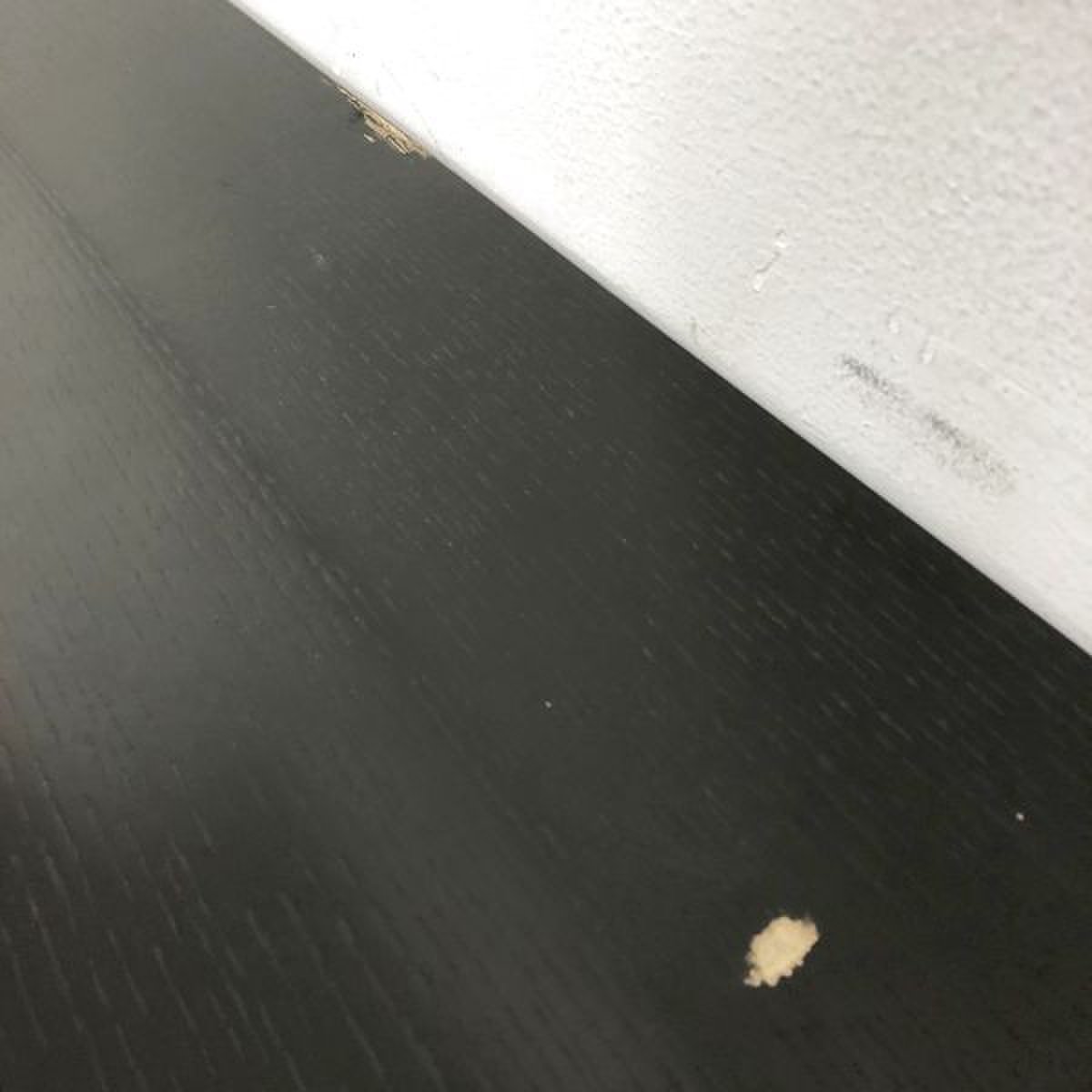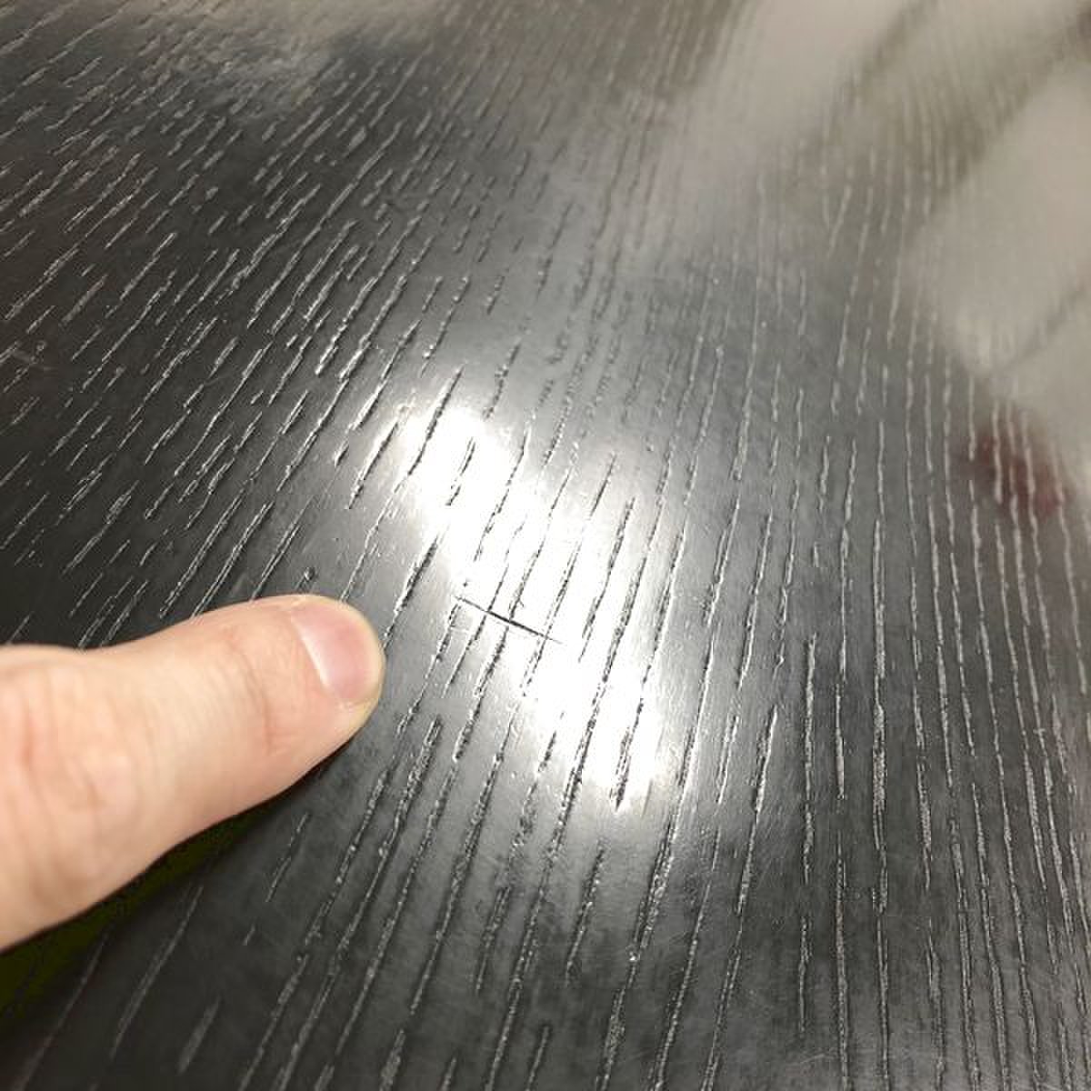 どの個体もお写真のような、天板のえぐれ箇所、その他ひっかき傷・摩耗などが散見されます。