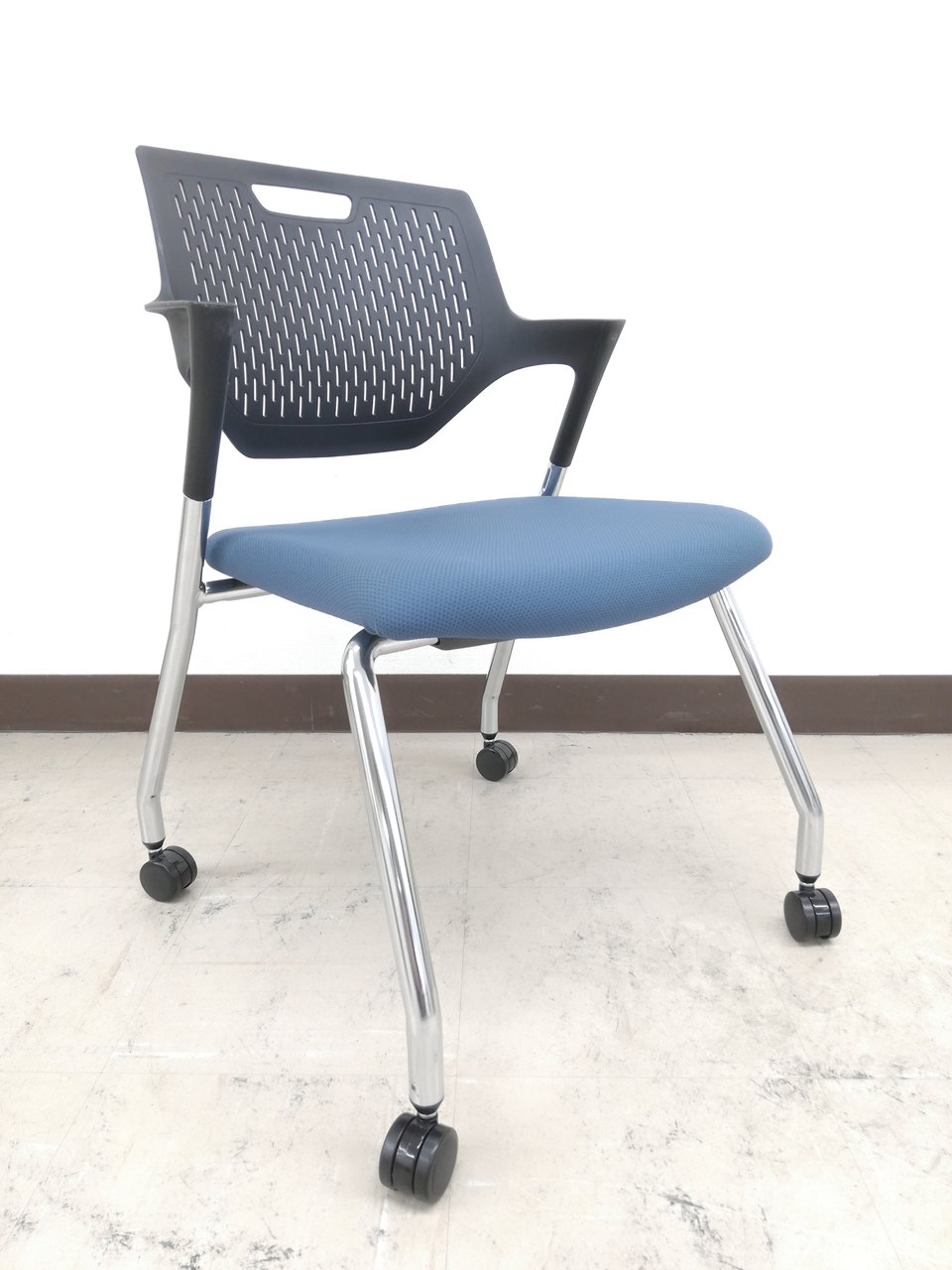 【8脚お揃い入荷】会議室やリフレッシュルームへどうぞ!※ブルー&ブラック◆オカムラ製パートチェア【RP】- 埼玉本店