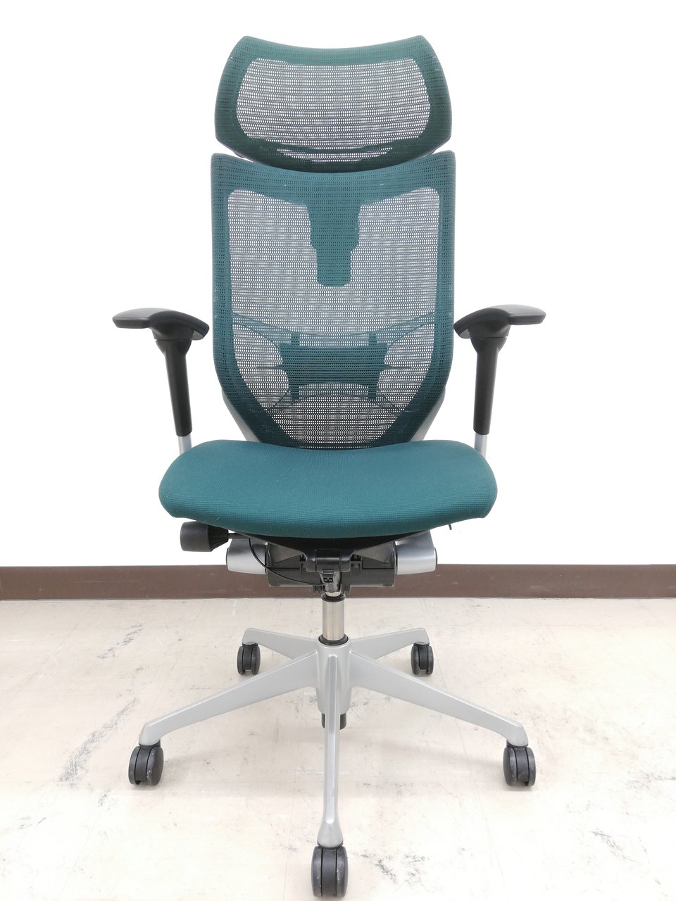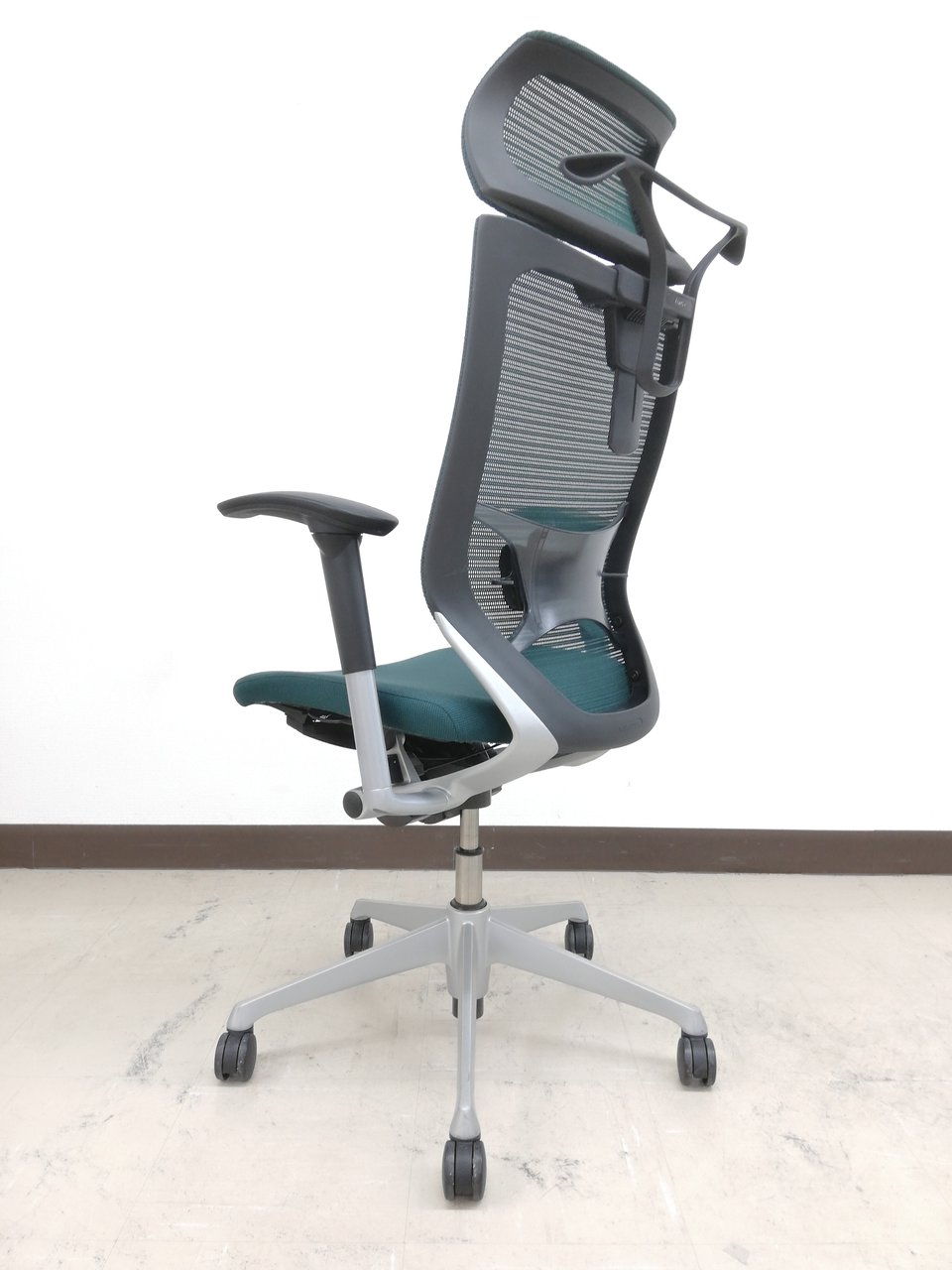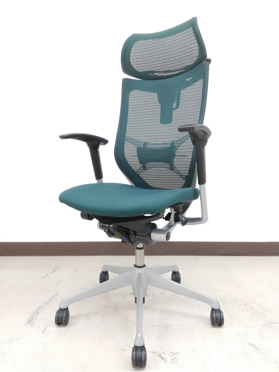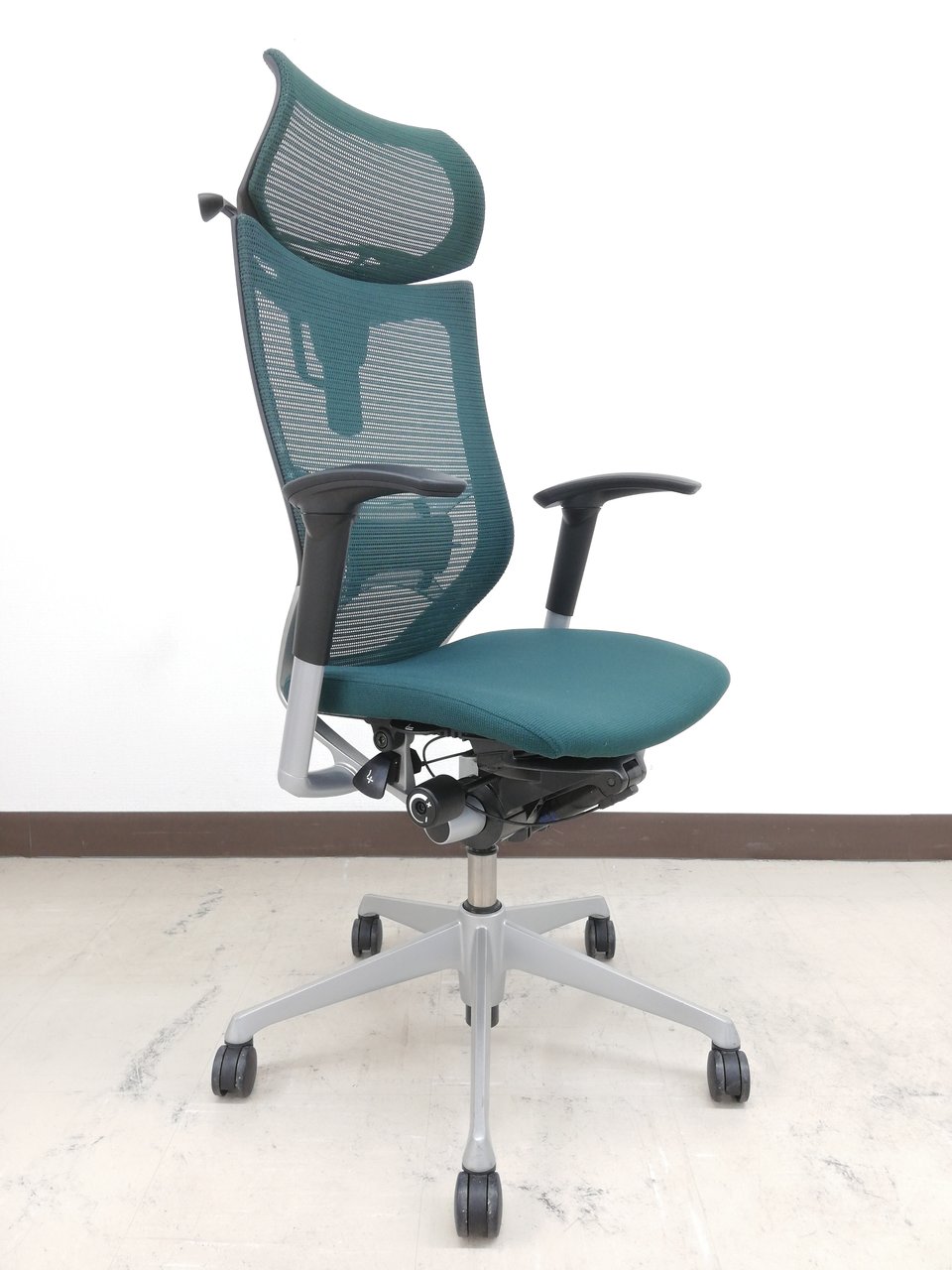 【状態極上Aランク品】フォレストグリーンバロン(Baron)チェアフルオプション&メッシュ座面仕様※可動ヘッドレスト&肘掛け新品◆オカムラ製【RP】- 埼玉本店