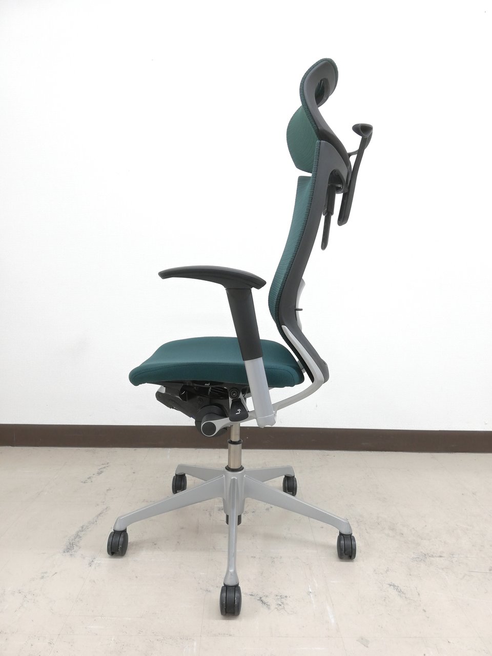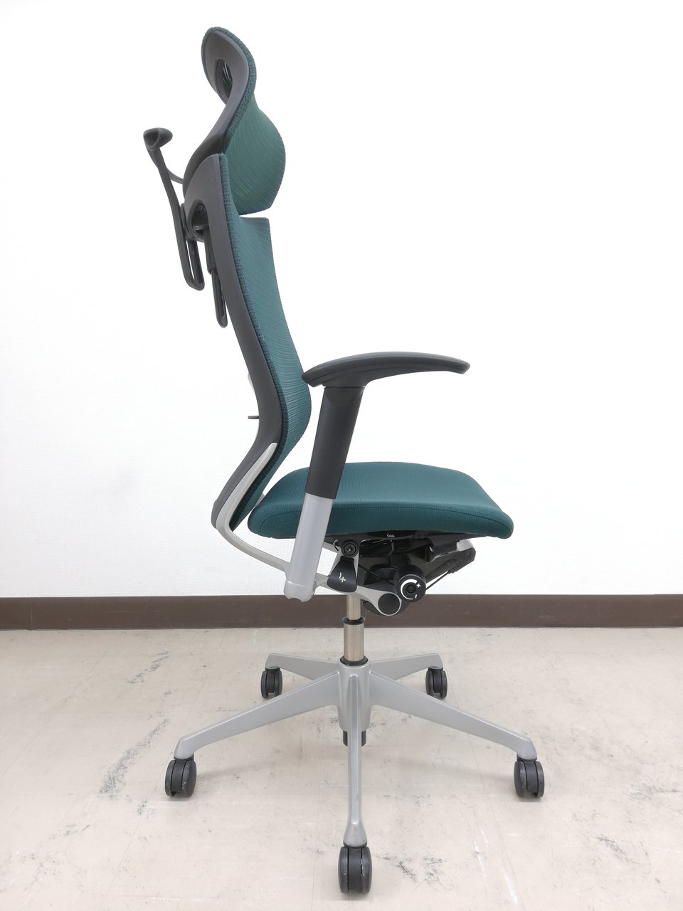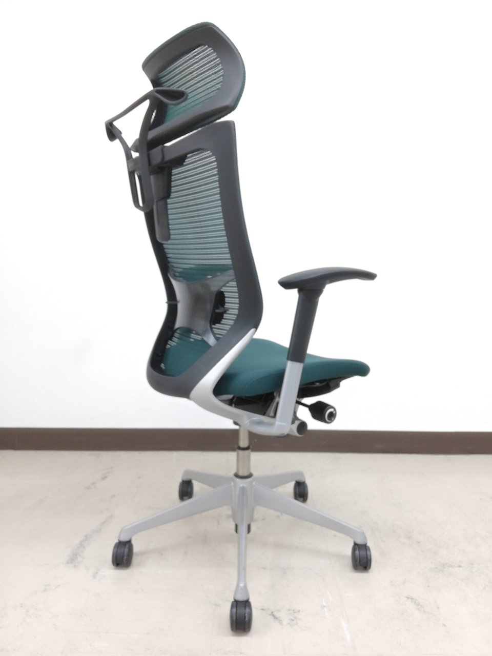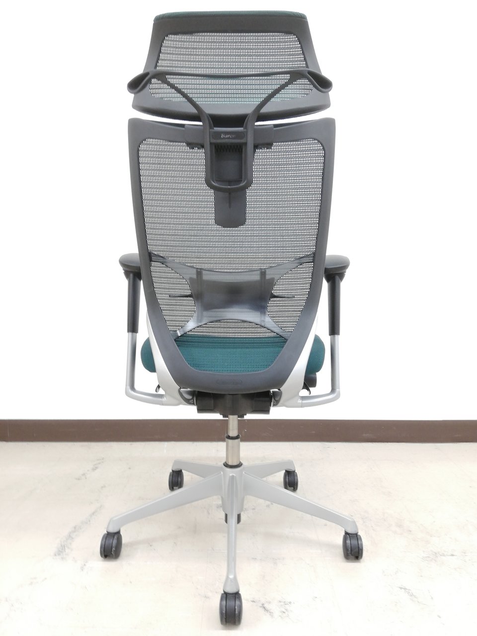 【状態極上Aランク品】フォレストグリーンバロン(Baron)チェアフルオプション&メッシュ座面仕様※可動ヘッドレスト&肘掛け新品◆オカムラ製【RP】- 埼玉本店