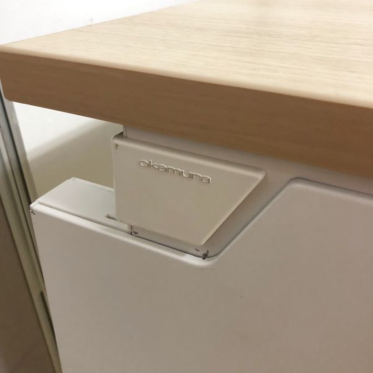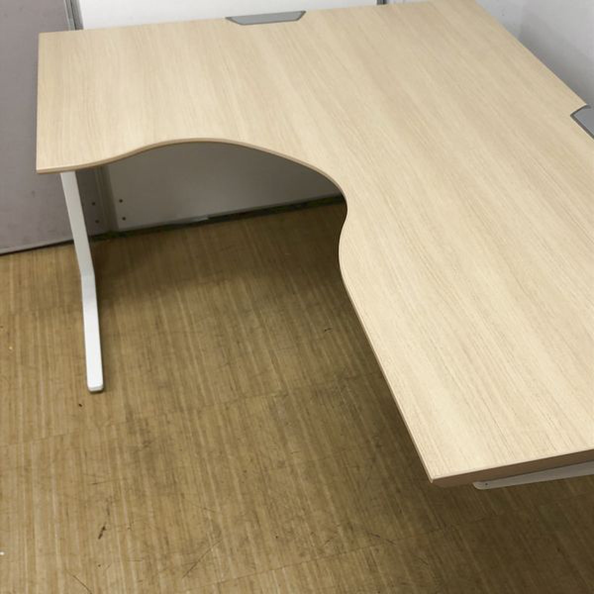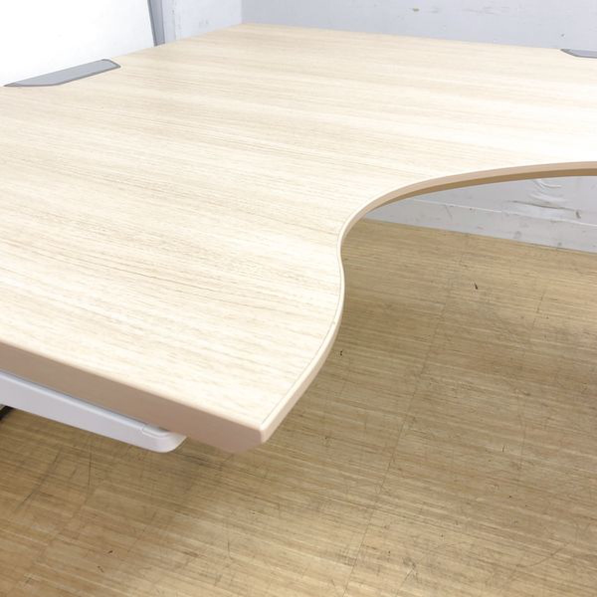 L型デスク 左ラウンド ナチュラル天板/ホワイト脚の美しい仕上がり オカムラ プロユニット- 名古屋千種店