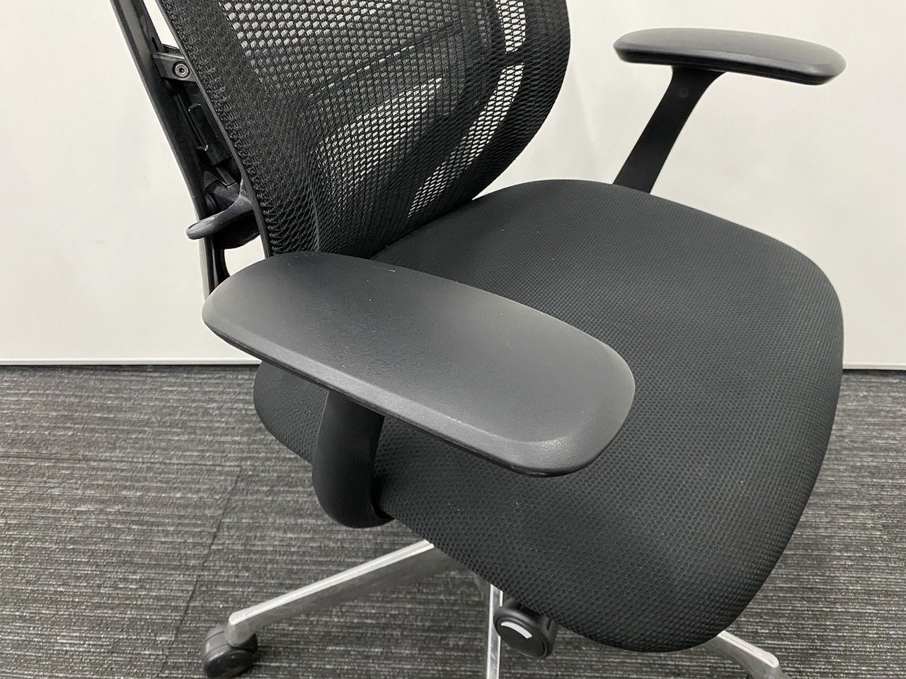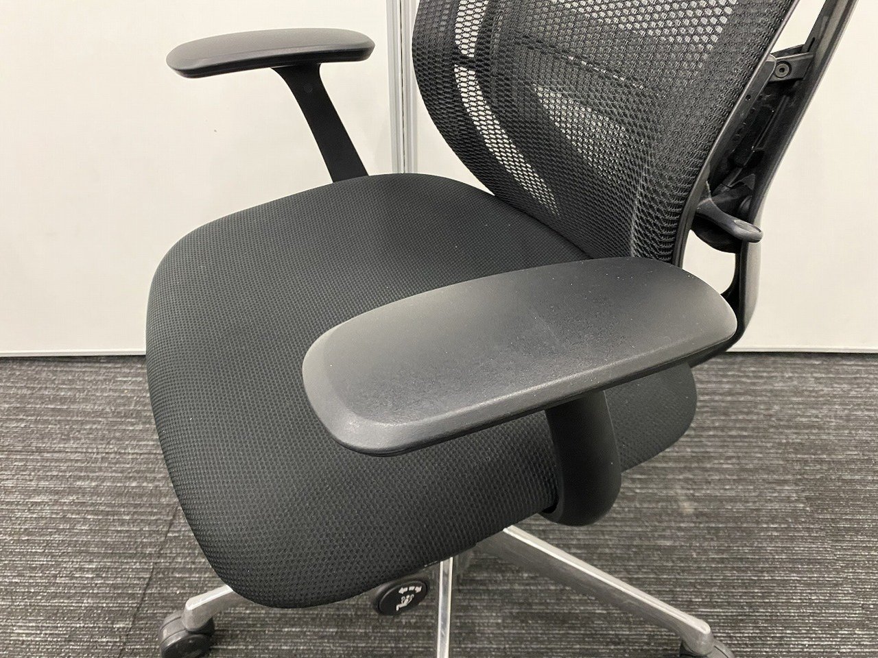 【限定1脚】【三次元曲面が身体にフィット!前傾チルト機能付き大人気メッシュチェア!】■オカムラ(okamura)製 シルフィーチェア(Sylphy) 肘付きハイバック ■背面メッシュ ■可動肘 ■ブラック×ブラックシェル ■ランバーサポート付き
