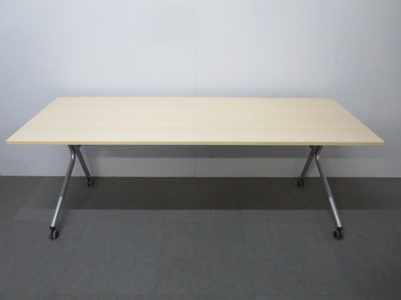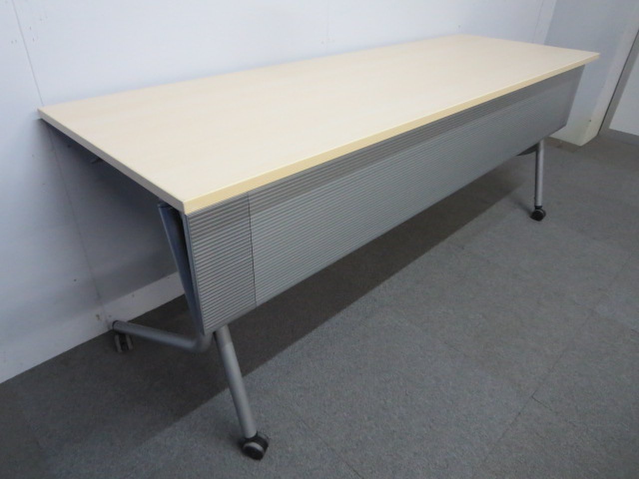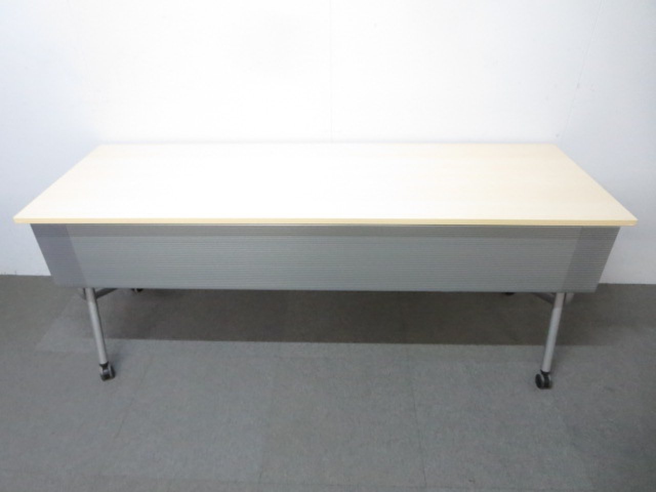 【定価約8万円】【天板ナチュラルカラーの人気サイドスタックテーブル!2~3人使用に最適!】■オカムラ(okamura)製 ネスティア(NESTIA)シリーズ サイドスタックテーブル フラップタイプ W1800×D600㎜ ■幕板付 ■木目ナチュラル