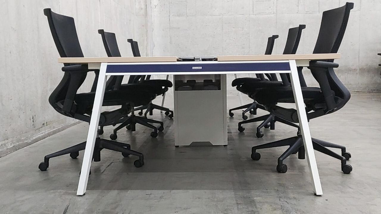 8名程での着座が可能なフリーアドレスデスク入荷!レイ変で入出荷続出!! オカムラ/マニフォールド 【倉庫在庫品】ブルーエンブレム【RP】- 品川・三田店
