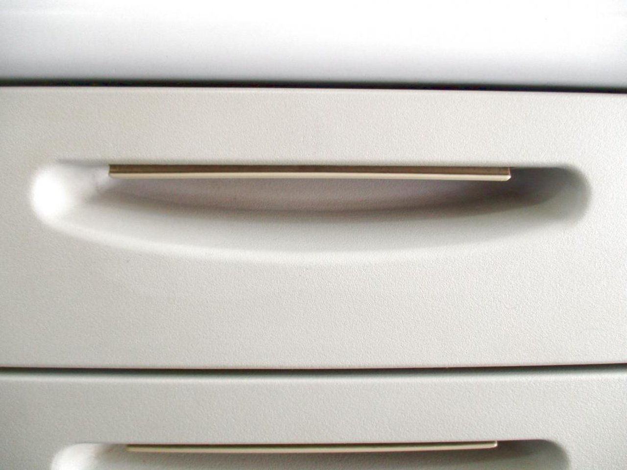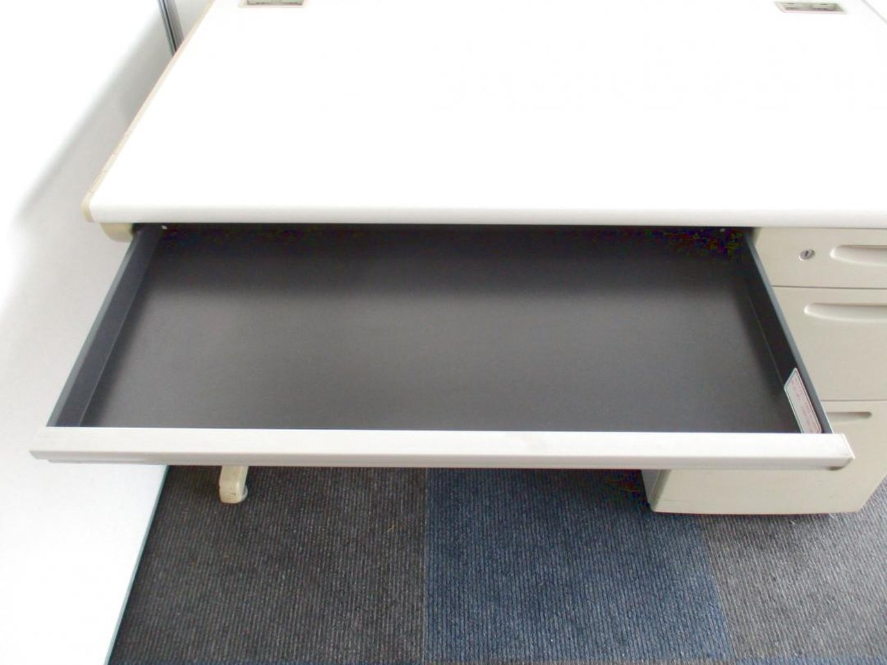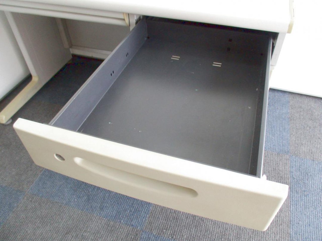 - 袖机のワゴンは、最下段がロング引出しになっており、従来より収納力120%アップ。
