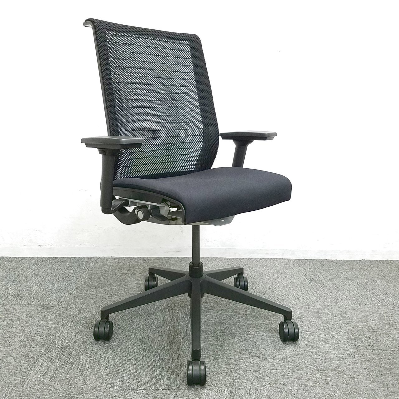 【美品】スチールケース|シンク|ブラックカラー|可動肘|肘付きハイバックチェア!!【オフィスチェア店】- オフィスチェア店