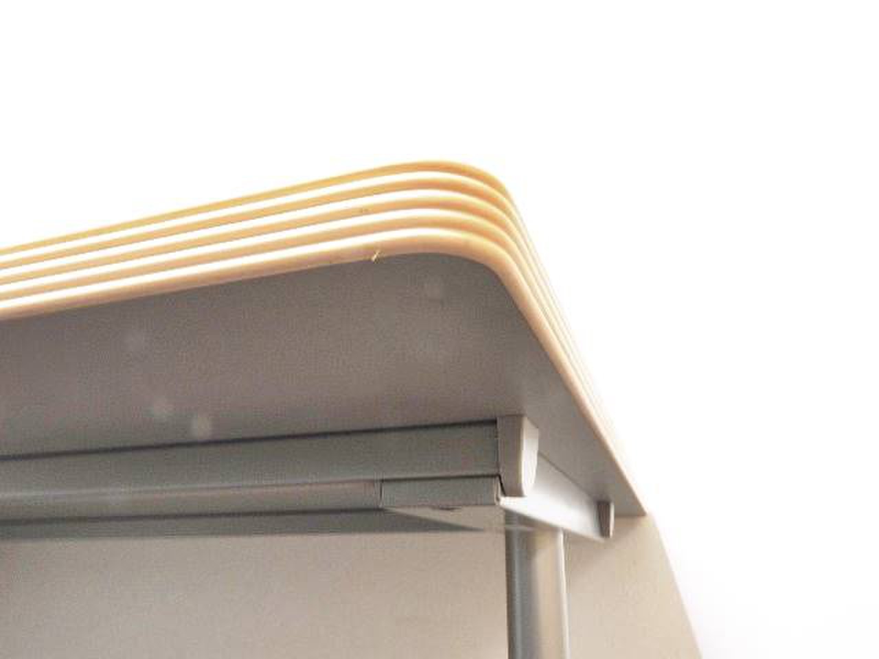 - あり黄ばみ・変色が広い範囲にうっすらある、または濃い黄ばみ・変色が一部ある。(例、天板、幕板、棚板、サイド部分、脚部等にある。)