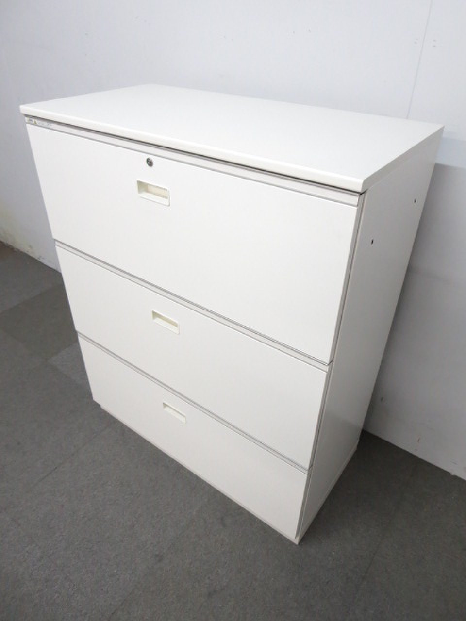 引出し型でファイル書類の収納にオススメの3段ラテラル書庫です。