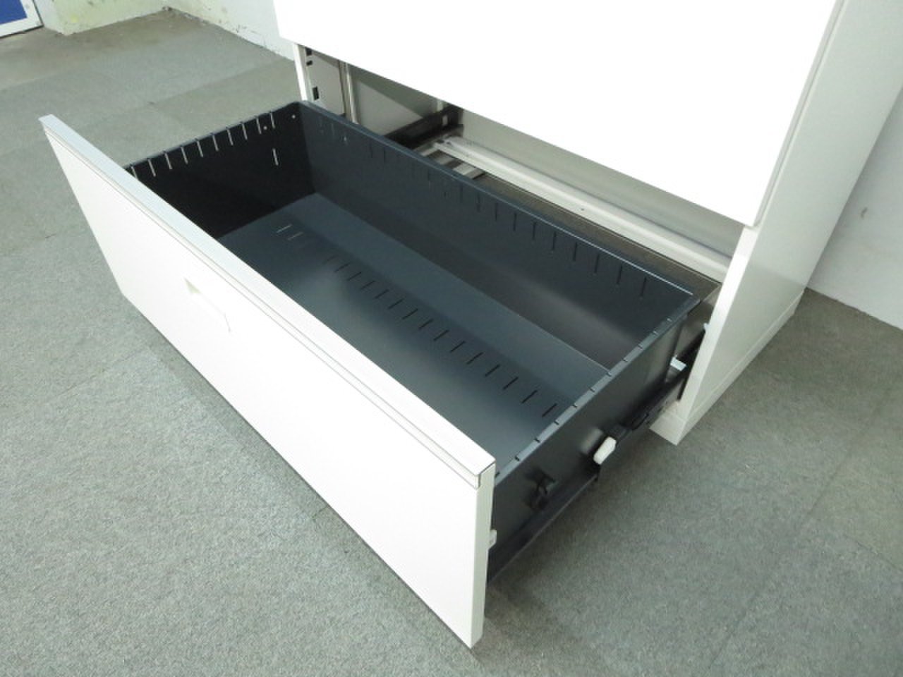 - 一部不具合ありそ引出の開閉不可、施錠不可、棚板無しといったの書庫の本来の効用を果たすための機能以外の一部が使用不可(例、扉、引出の開閉がしづらいなどがある。 )