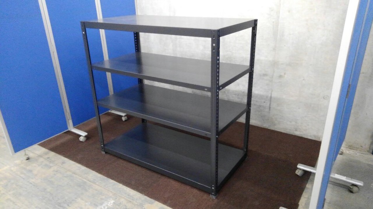 コクヨの珍しいブラック色ラックが2台 入荷致しました。 注)呼称W1200/D600 実寸W1215/D615 天地4段 耐荷重:段/150kg ※マテハン本舗の中古商品は、千葉県柏市に在庫がございます。- マテハン本舗