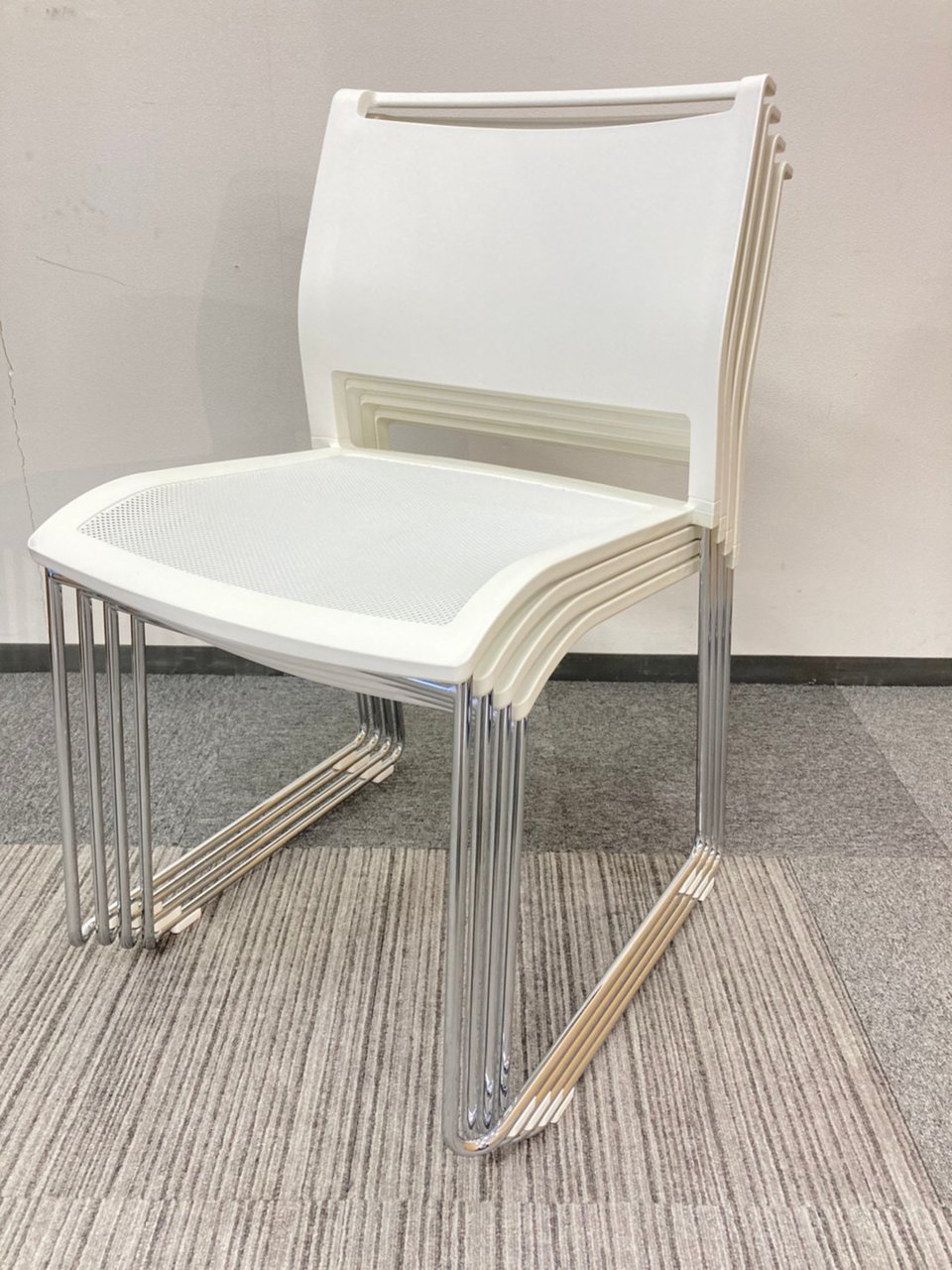【美品!】AICHI製 スタッキングチェア ホワイト 座面メッシュ 会議 ミーティング リフレッシュスペース【新大阪】【中古品】【淀川区】【北区】【吹田】【起業】- 新大阪店