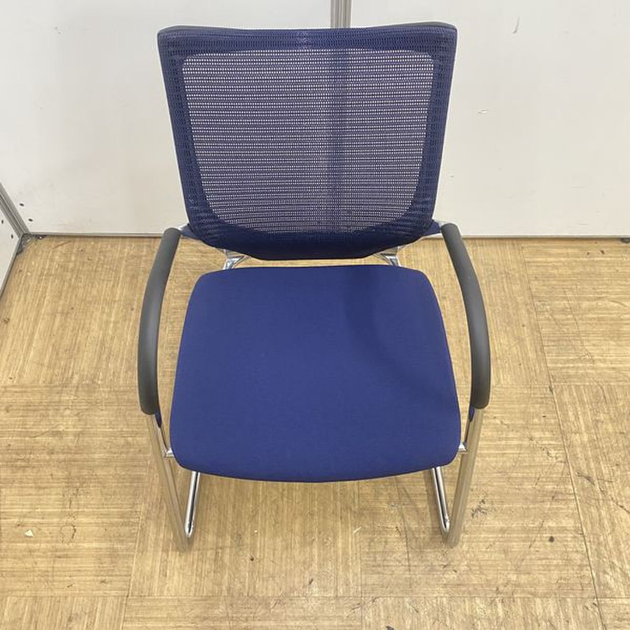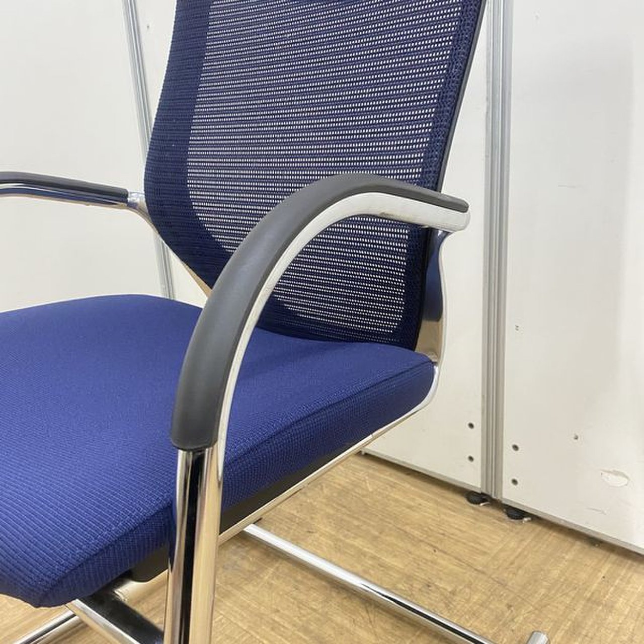 【4脚限定!!】オカムラ|バロン|ブルーカラー|肘付きミーティングチェア|メッシュ【オフィスチェア店】- オフィスチェア店
