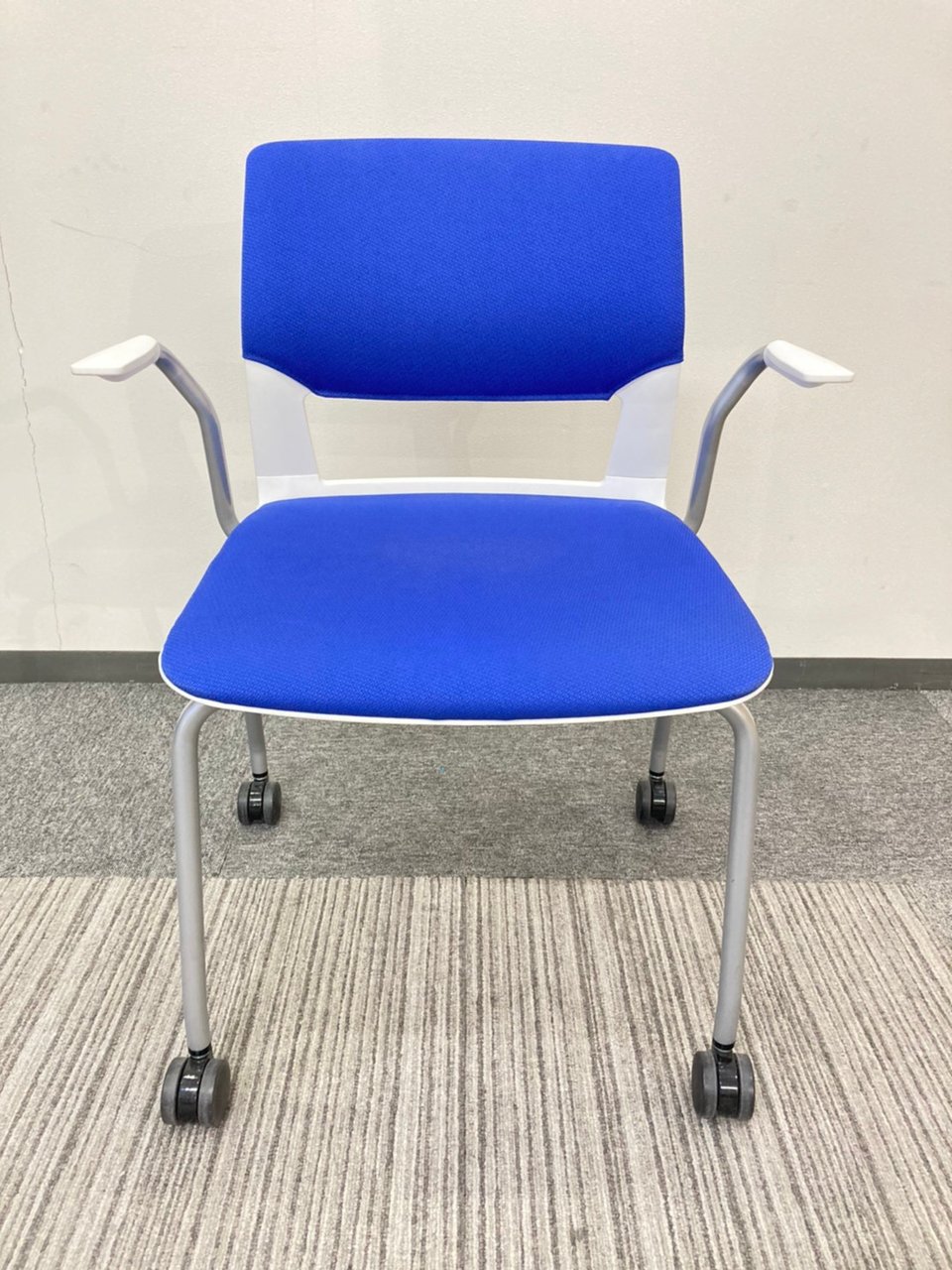 【スムーズに動かせるキャスター付!】■コクヨ製 スタッキングチェア 肘付 ディープマリン- 川崎店