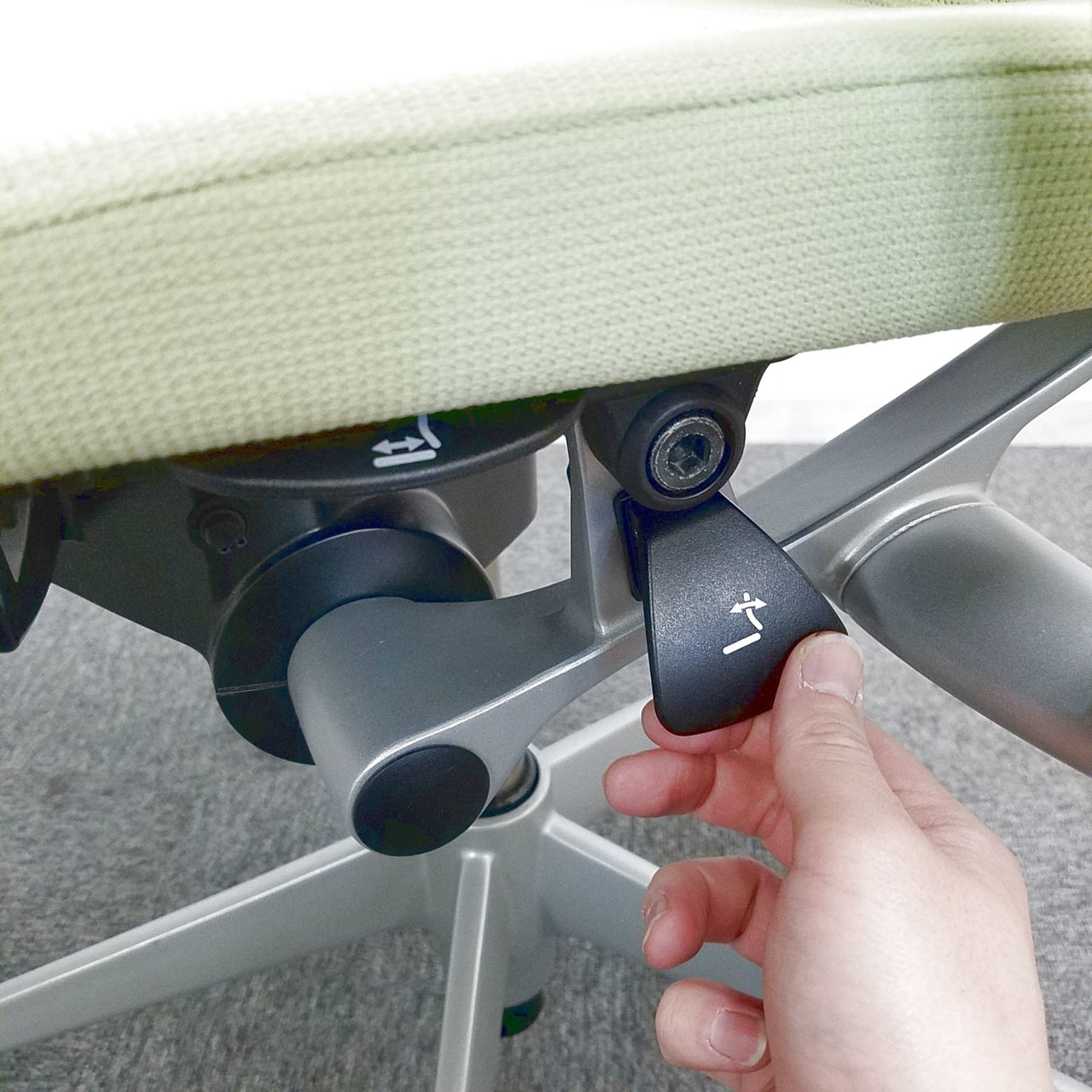 - 座面の右下にあるレバーの操作により座面位置を上下に100mm分調整することが可能です。