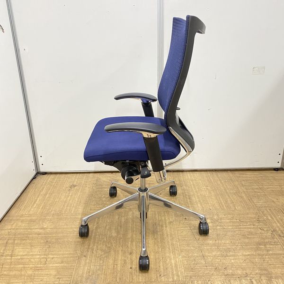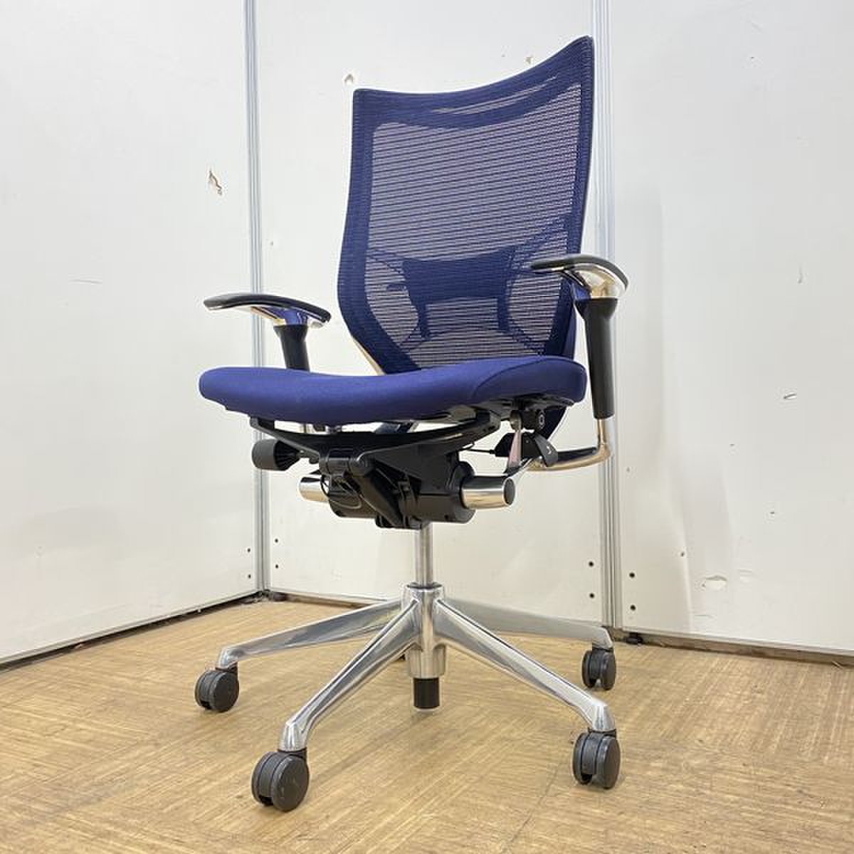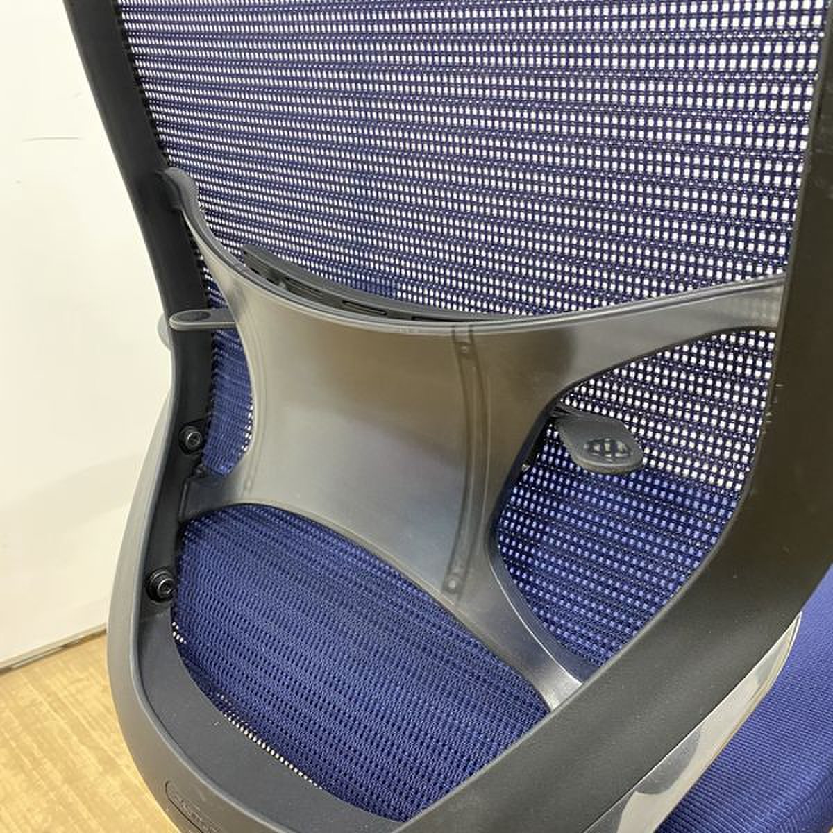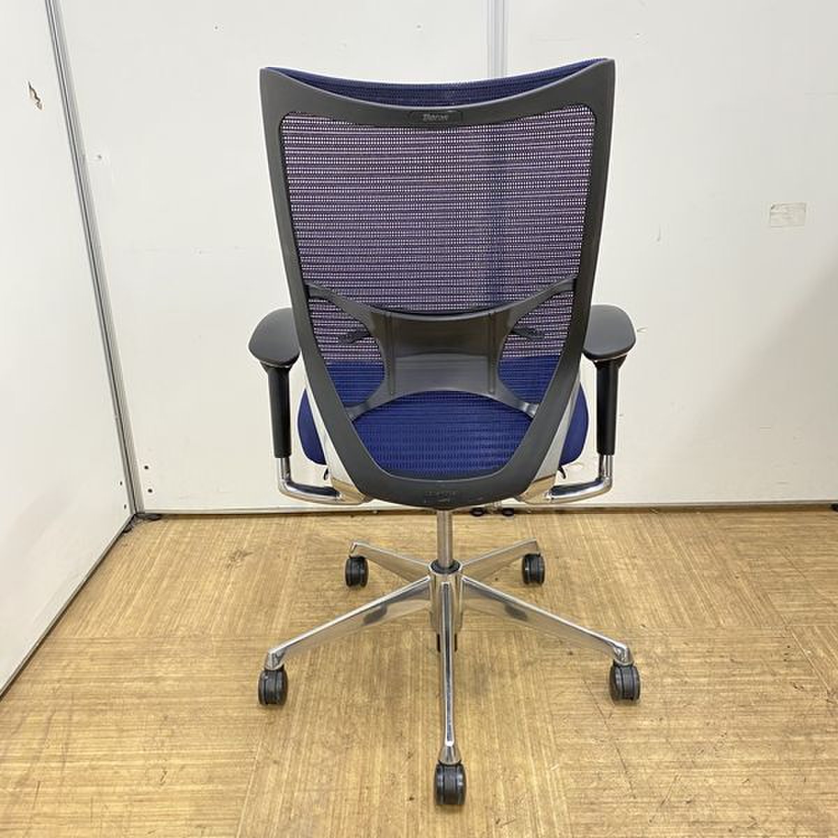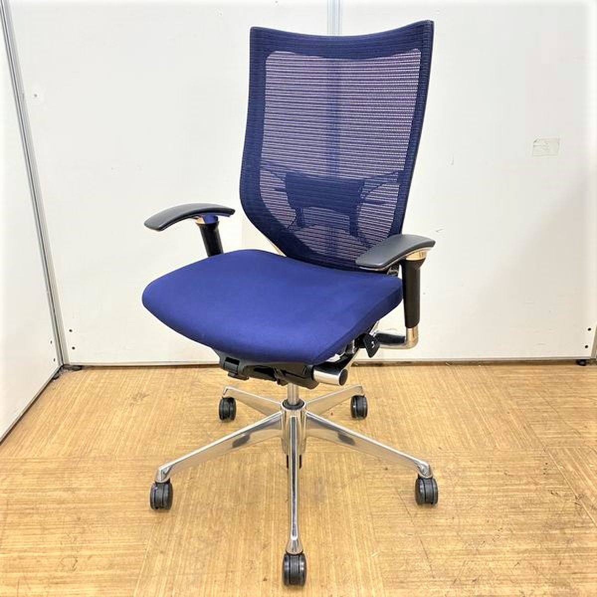 【オフィスの執務室、会議室におすすめ!】■オカムラ(okamura)製 バロン(Baron)チェア 肘付き ハイバック 背面メッシュ ■可動肘 ■ダークブルー × ホワイトシェル【硬めの座面が大人気!国産メッシュチェアの代表格!】【状態良好品!】